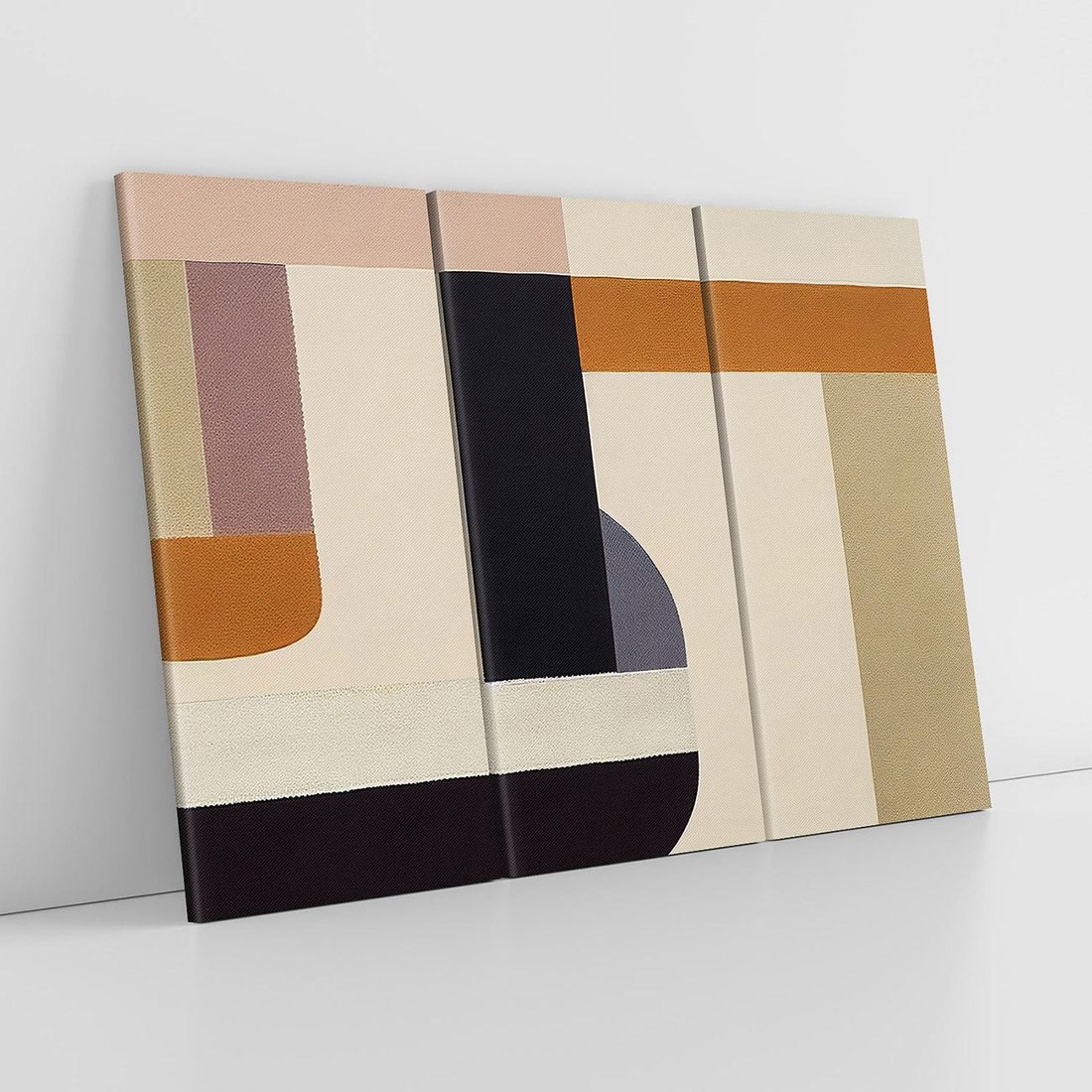 To nowoczesny obraz, w którym dominują geometryczne pasy w odcieniach beżu, brązu i camel. Jego minimalistyczny design i wyrafinowany styl doskonale wpasują się w nowoczesne wnętrza. Geometryczne kompozycje tworzą harmonijne połączenie prostoty i elegancji, wzbogacając przestrzeń swoim subtelnie ziemistym wyglądem.