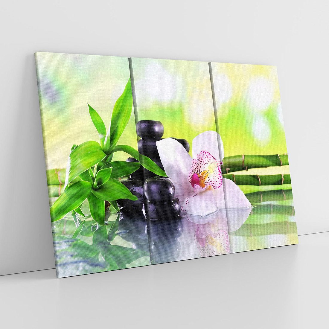 - Obraz na płótnie 120x80 - Oaza Spokoju: Bambus, Kwiaty i Kamienie w SPA