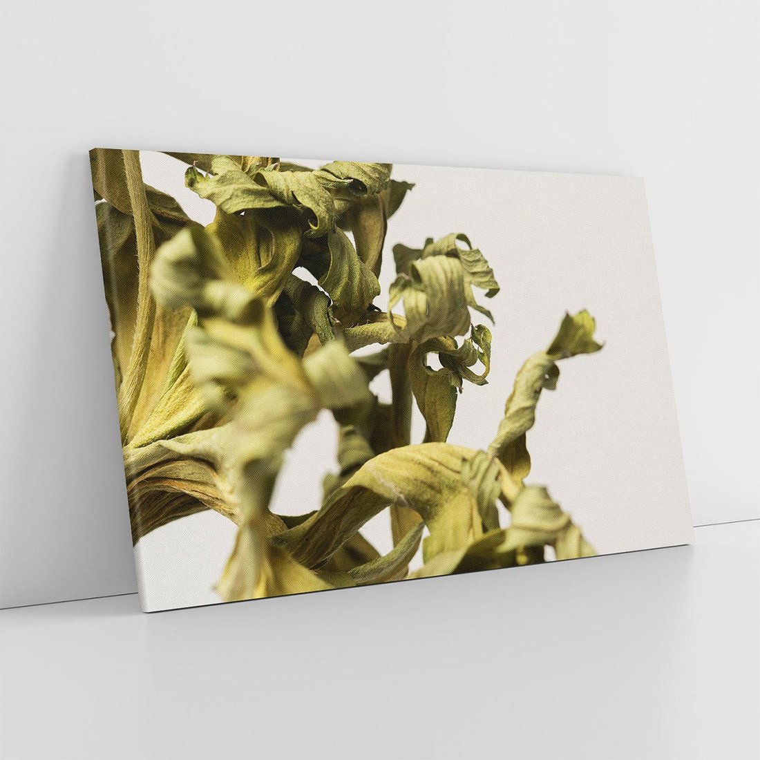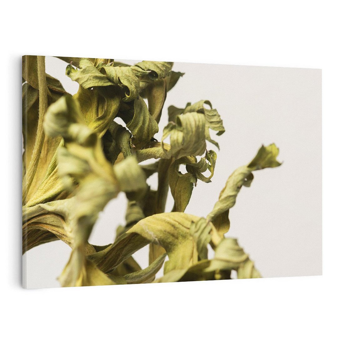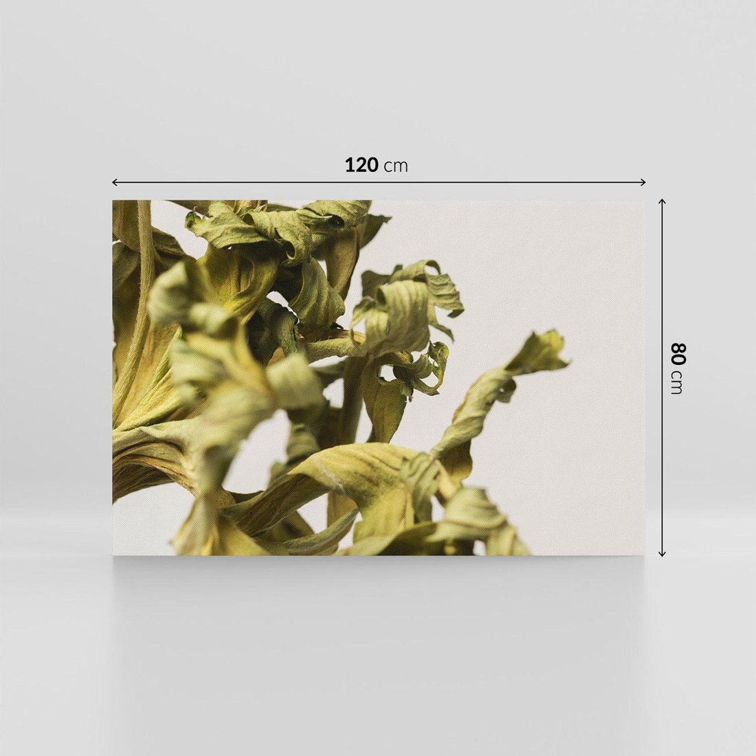 Przenikający obraz na płótnie ukazuje suche trawy i liście, oddając moment przejścia z pory deszczowej do pory suchej. Ich złociste barwy i delikatny ruch tworzą atmosferę zmiany i odrodzenia. Dodaj naturalny element do swojego wnętrza za pomocą tego pejzażowego dzieła sztuki.
