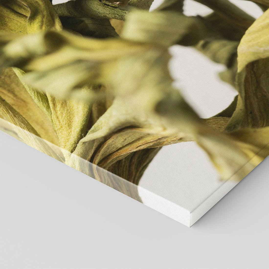 Przenikający obraz na płótnie ukazuje suche trawy i liście, oddając moment przejścia z pory deszczowej do pory suchej. Ich złociste barwy i delikatny ruch tworzą atmosferę zmiany i odrodzenia. Dodaj naturalny element do swojego wnętrza za pomocą tego pejzażowego dzieła sztuki.