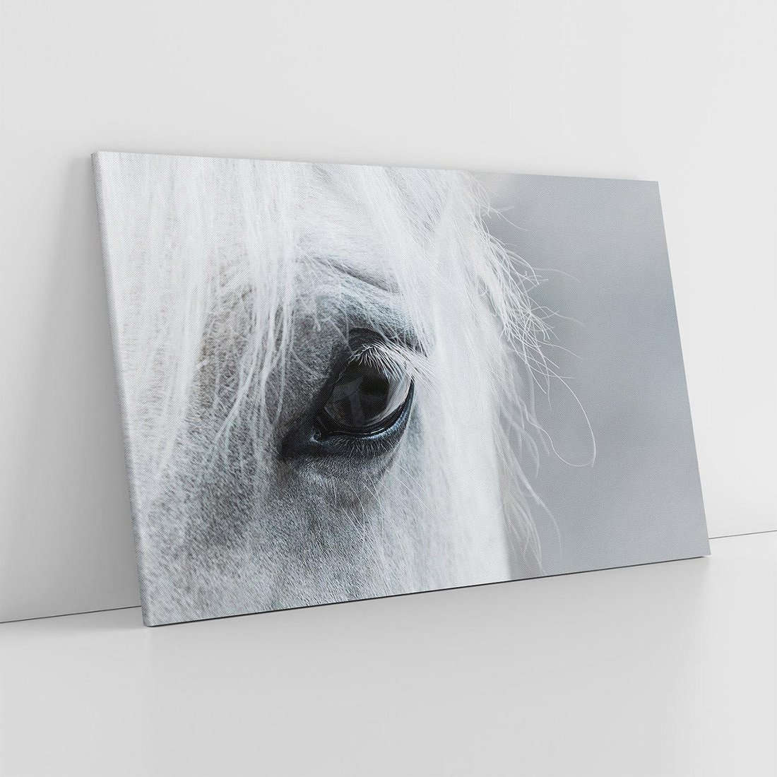 Obraz na płótnie 120x80 - Oko Mocy - czarno białe zdjęcie, zbliżenie makro na oko konia