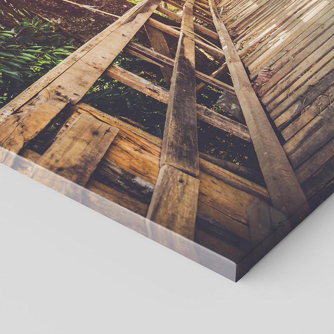 Przywołaj optyczne iluzje dzięki temu uroczemu obrazowi przedstawiającemu drewniany most. Zaskakujące perspektywy, dynamiczne kształty i wyjątkowa kompozycja tworzą niepowtarzalą aurę. Ta kompozycja dodaje nowatorskiego klimatu i fascynacji, idealna dla miłośników sztuki i pragnących wprowadzić unikalne wrażenia do swojego wnętrza.