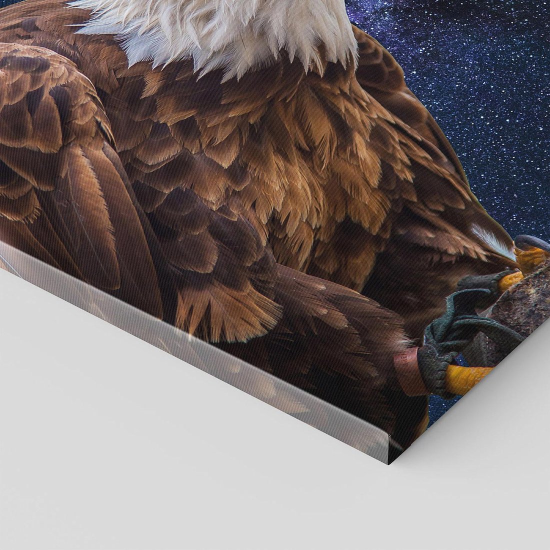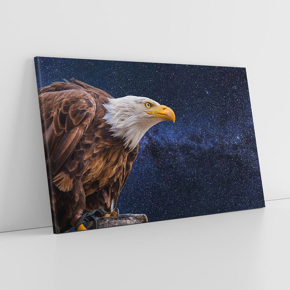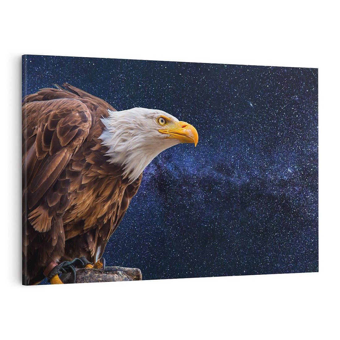 Ten obraz przedstawia majestatycznego orła unoszącego się w niebieskiej przestrzeni, otoczonej gwiazdami. Intensywne kolory i precyzyjne detale oddają siłę i wizję wolności. Dodaj odrobinę mocy i ekspresji do swojego wnętrza.