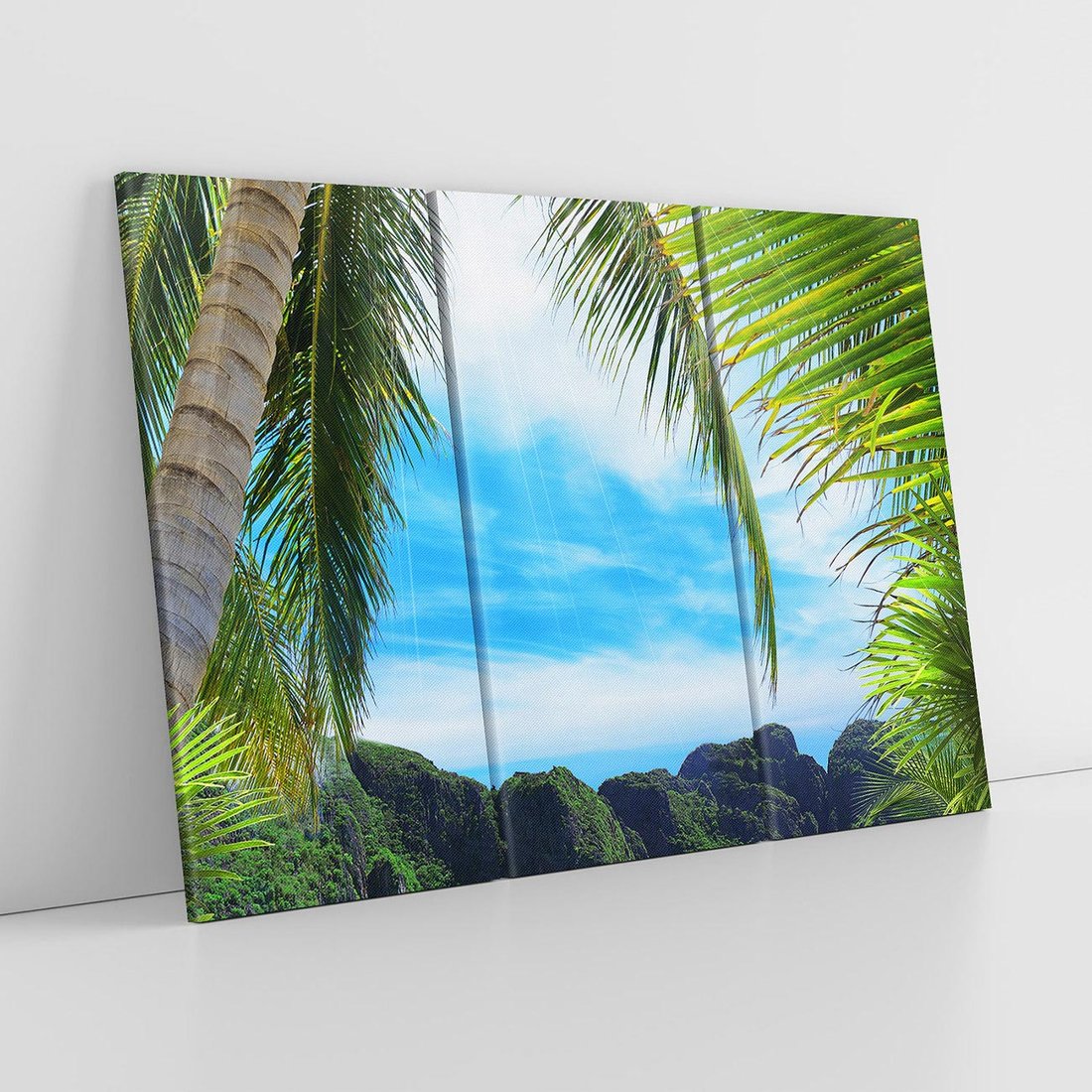 Odkryj urok tropików dzięki temu uroczemu obrazowi przedstawiającemu palmy na plaży. Z egzotycznym krajobrazem i relaksującym nastrojem, ożywia przestrzeń. Ta kompozycja dodaje atmosfery wakacyjnego odpoczynku i egzotycznego piękna, idealna dla miłośników plażowania i egzotycznych podróży.