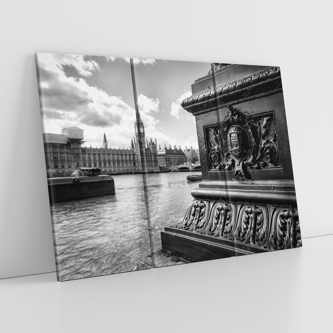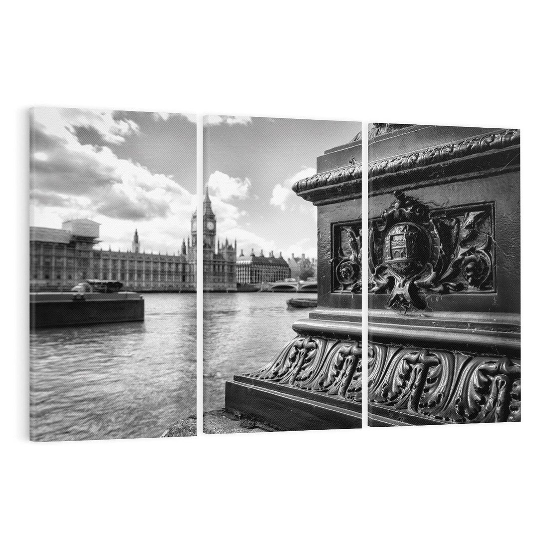 Ta czarno-biała fotografia ukazuje ikoniczne miasto - Londyn. Z widokiem na Tamizę i majestatyczny Big Ben w tle, obraz oddaje urok i elegancję tego miejsca. Kontrast między nowoczesnością a historią w Londynie widoczny jest w każdym szczególe. To pejzaż, który przenosi widza w czasie i zachwyca swoją atmosferą miejskiej tajemnicy.