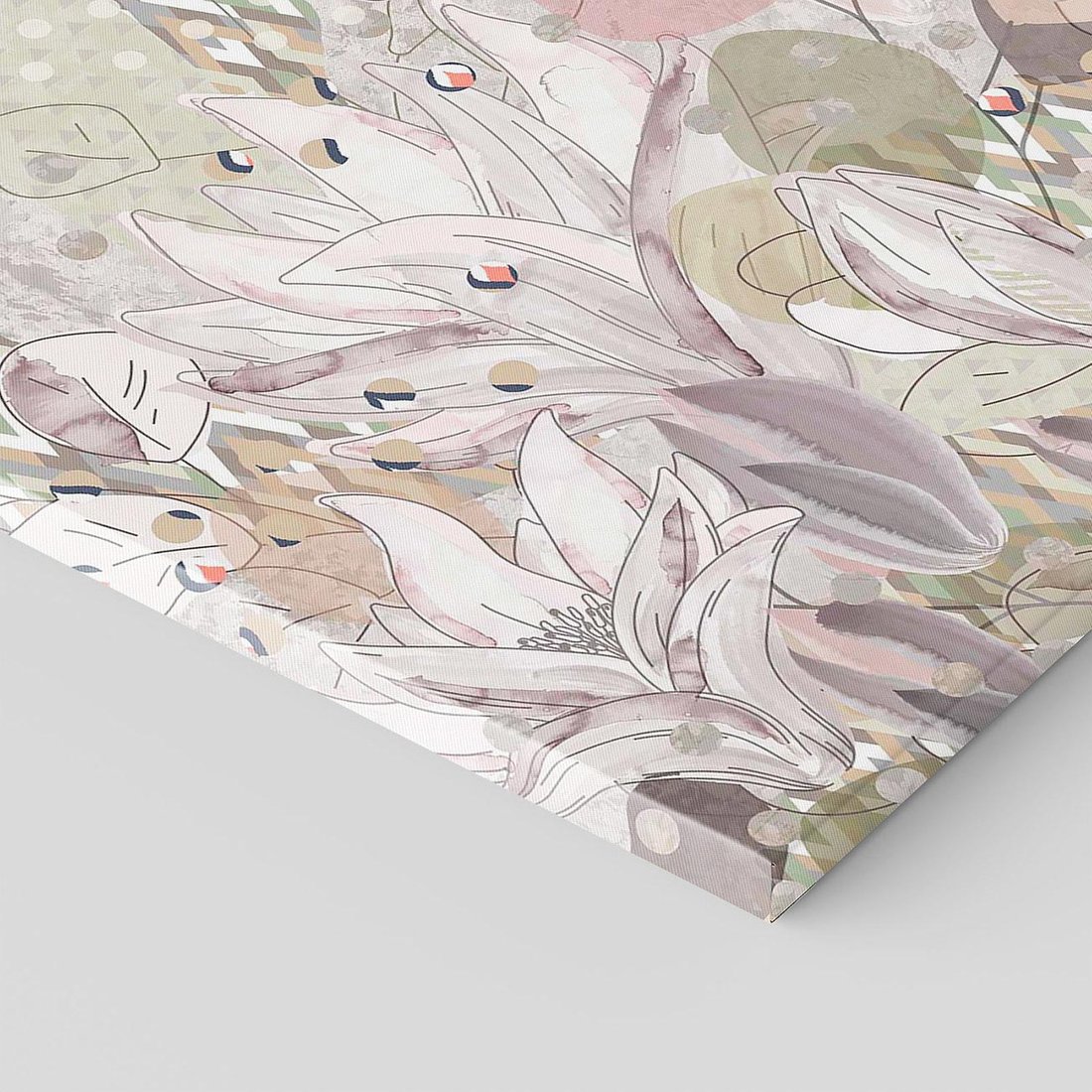 Odkryj wyjątkowy obraz, który przyciąga wzrok połączeniem różnorodnych tekstur i subtelnych roślinnych motywów. Stonowane jasne kolory w odcieniach zieleni i pudrowego różu nadają mu delikatny i harmonijny charakter. To dzieło sztuki stworzone dla miłośników natury i minimalistycznej estetyki, pragnących wprowadzić spokój i harmonię do swoich wnętrz. Doskonały akcent dla tych, którzy cenią wyrafinowany styl i delikatność.