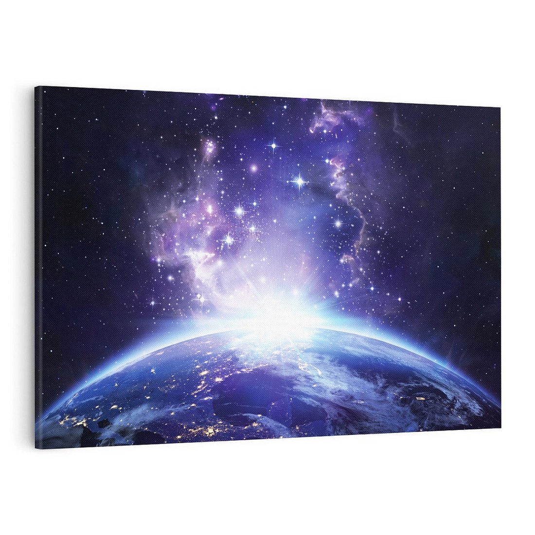 Przenieś się w nieskończoną przestrzeń kosmosu. Ten obraz przedstawia ziemię w otoczeniu gwiazd i tajemniczych galaktyk. Wprowadzi on mistycyzm i fascynację kosmosem do Twojego wnętrza, inspirując do wielkich podróży myślą.