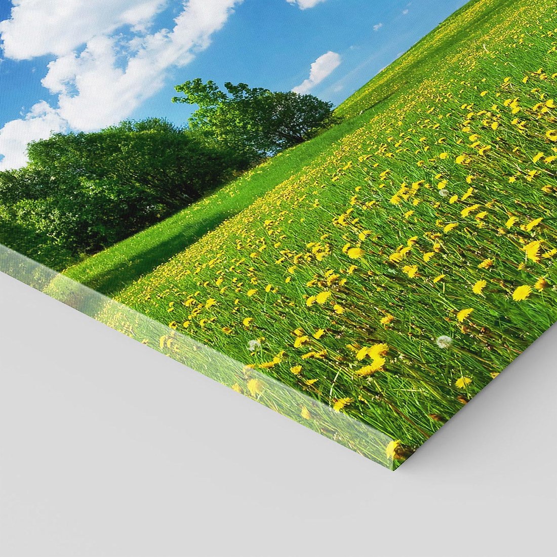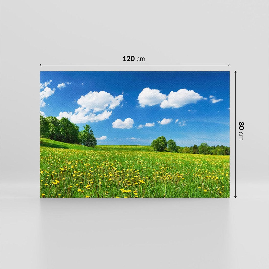 Ożyw swoje wnętrze tym uroczym obrazem przedstawiającym polanę otoczoną drzewami. Kwitnące kwiaty, zielona trawa i przytulna atmosfera tworzą spokojną przestrzeń. Ta kompozycja dodaje harmonii i wewnętrznego ukojenia, idealna dla miłośników naturalnych krajobrazów i chwili wytchnienia na łące.