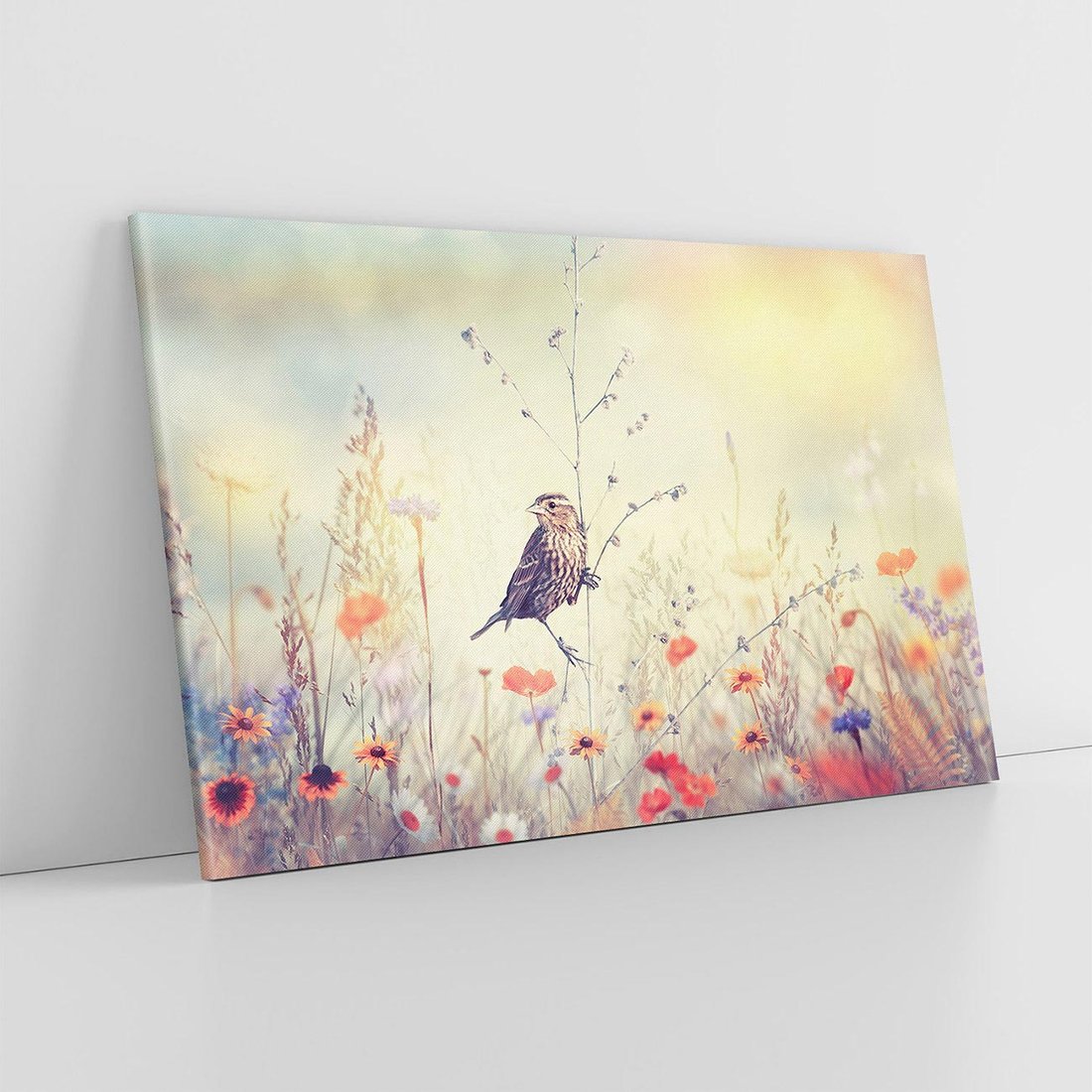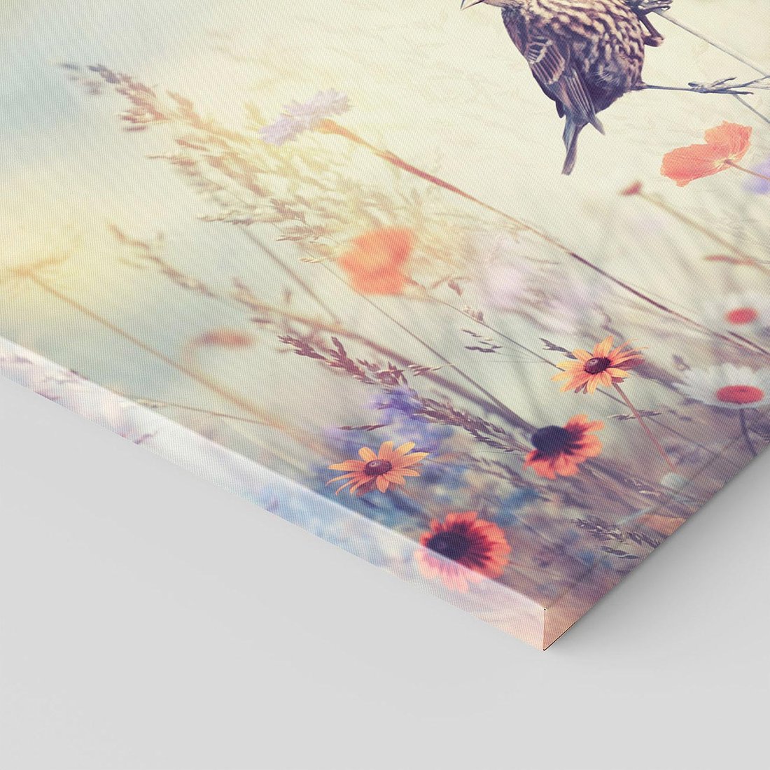 Obraz na płótnie 120x80 - Poranek wśród łąki - ptak, łąka