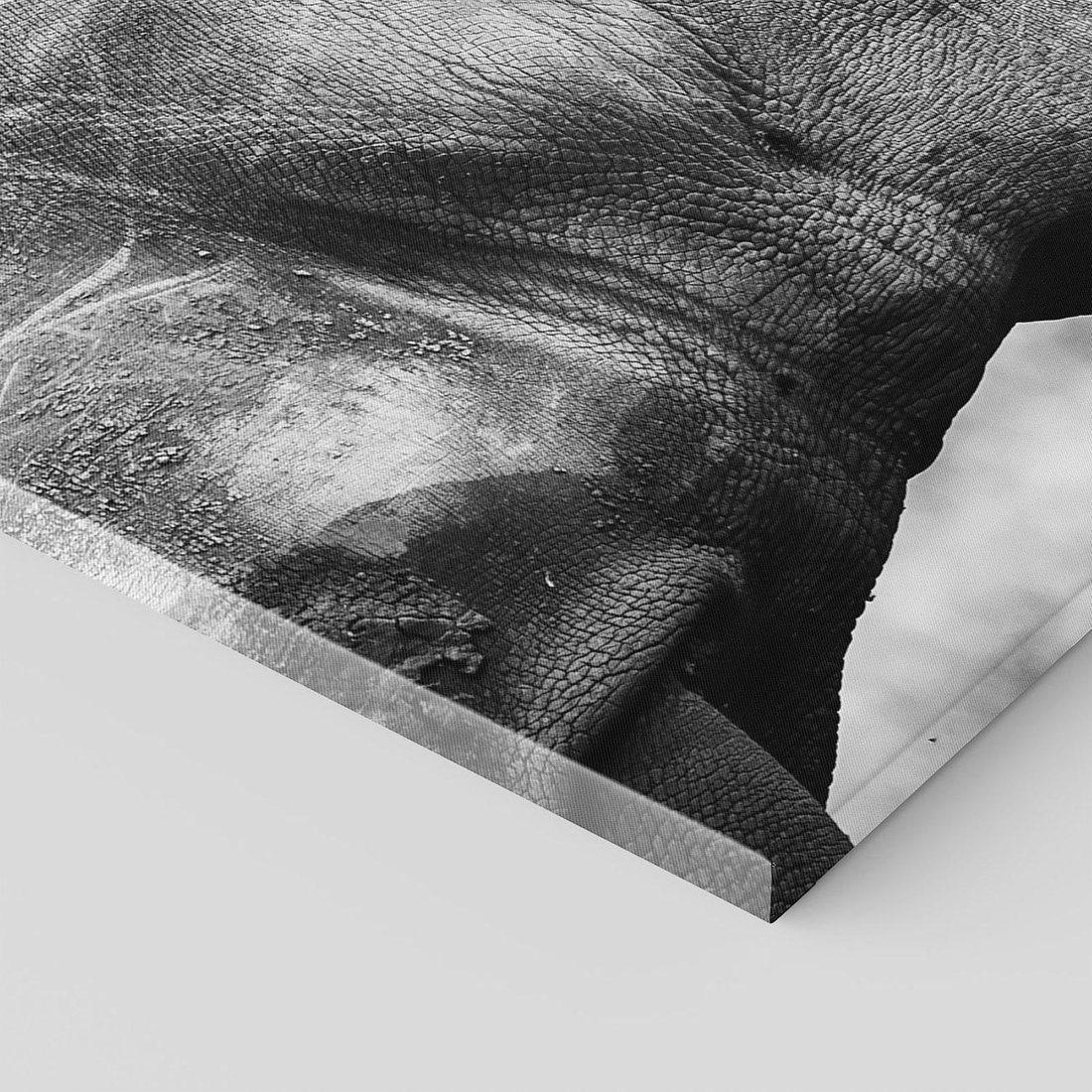 Obraz na płótnie 120x80 - Potęga Afryki - czarno biała fotografia, zbliżenie na postać nosorożca