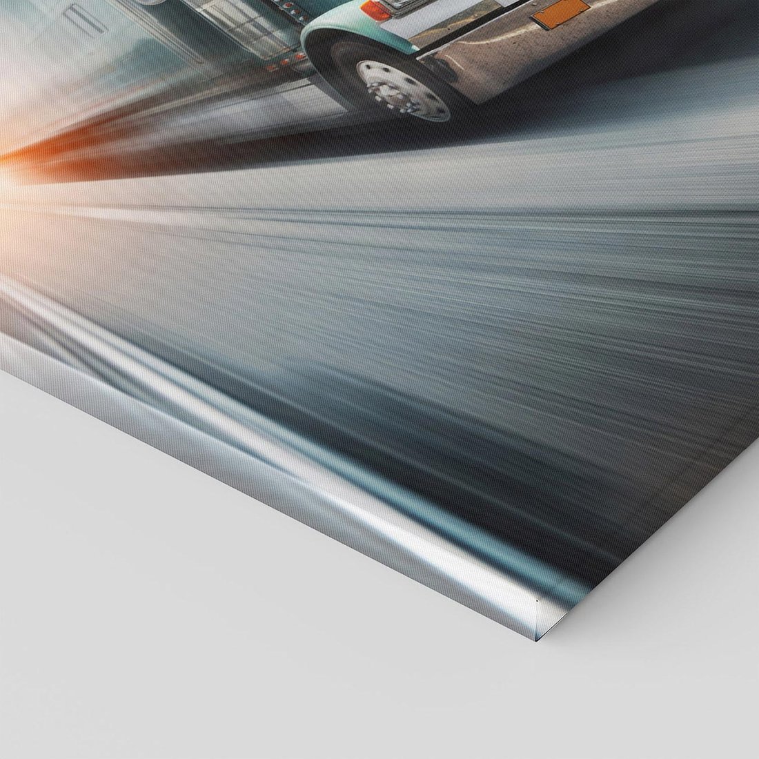 Dynamiczny obraz na płótnie przedstawiający ciężarówkę w amerykańskim stylu, pędzącą przez pustkowia zachodnich Stanów Zjednoczonych. Wiatr w włosach, wolność na horyzoncie - ta kompozycja przynosi dawkę energii i przygody. Doskonały wybór dla fanów motoryzacji i amerykańskiego stylu życia.