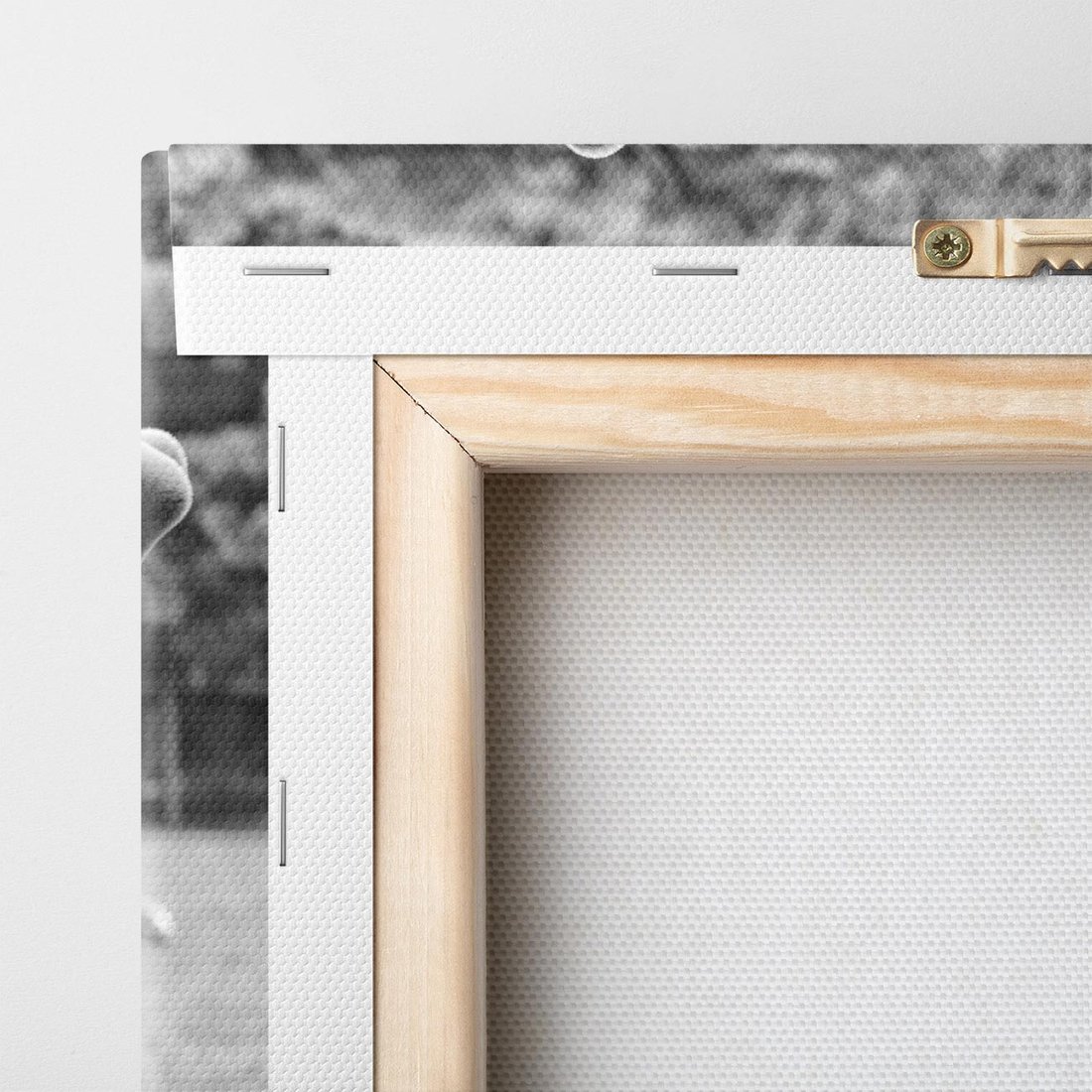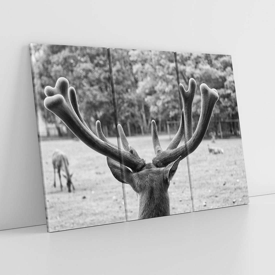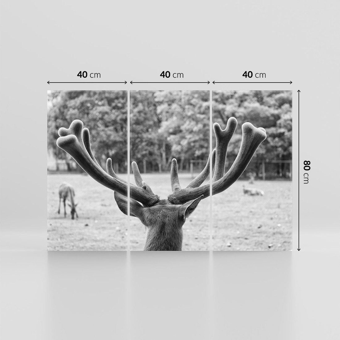 Obraz na płótnie 120x80 - Przygubione motyle marzeń - fotografia czarno biała, młody jeleń w zagrodzie