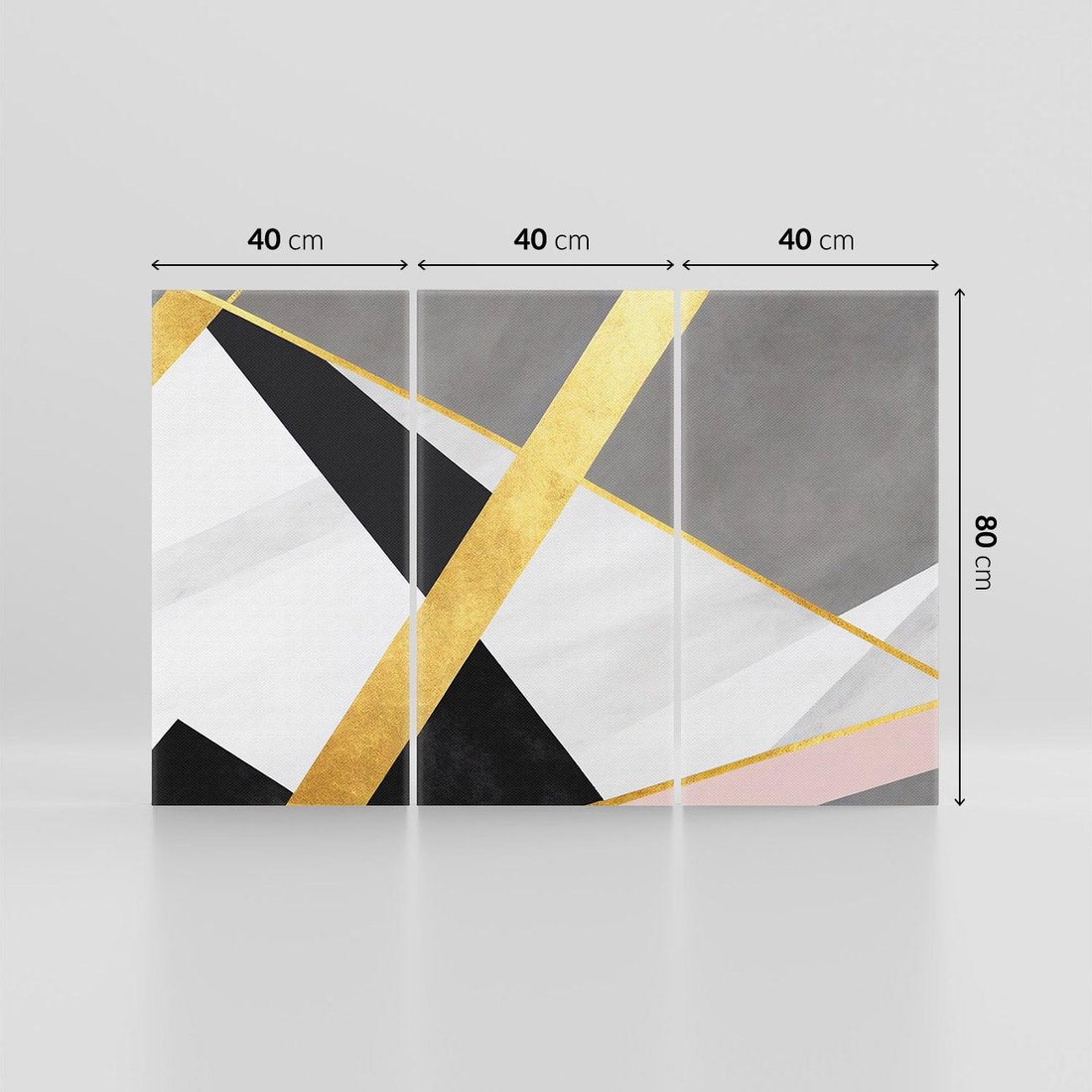 Obraz prezentuje złote abstrakcyjne linie w delikatnych odcieniach szarości i pudrowego różu. Nowoczesny styl podkreśla wyrafinowany charakter kompozycji, emanującej duchem glamour. Doskonały wybór dla wnętrz, które pragną zachować artystyczny i luksusowy wystrój.