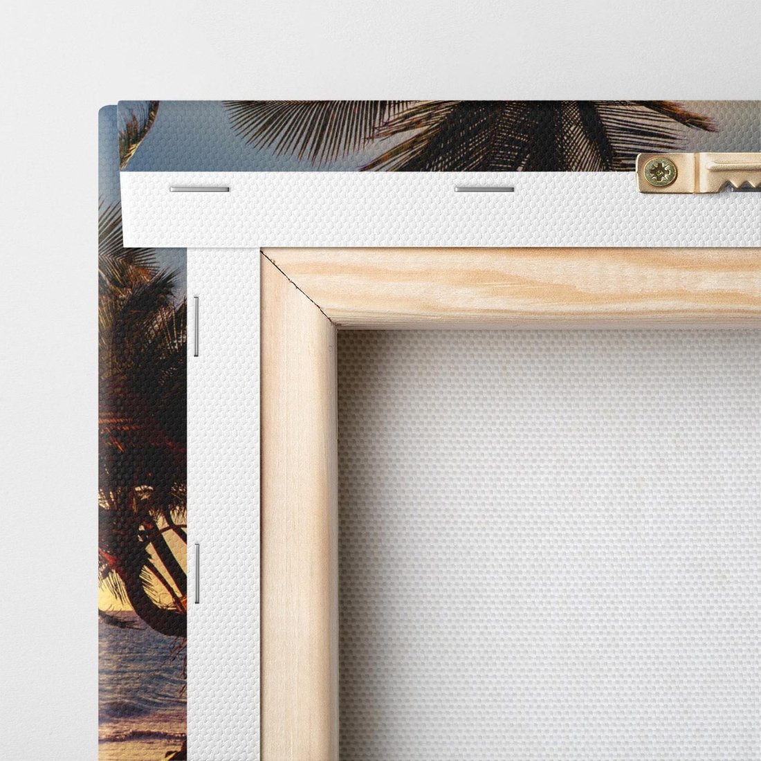 Przenieś się w magiczne chwile zachodu słońca na tropikalnej plaży dzięki temu malowniczemu obrazowi. Ciepłe kolory, palmowe drzewa i błyszczące morze tworzą romantyczną atmosferę. Ta kompozycja dodaje błogości i egzotycznego klimatu, idealna dla osób pragnących przenieść się w magiczne chwile i oddać się pięknu tropikalnej przyrody.