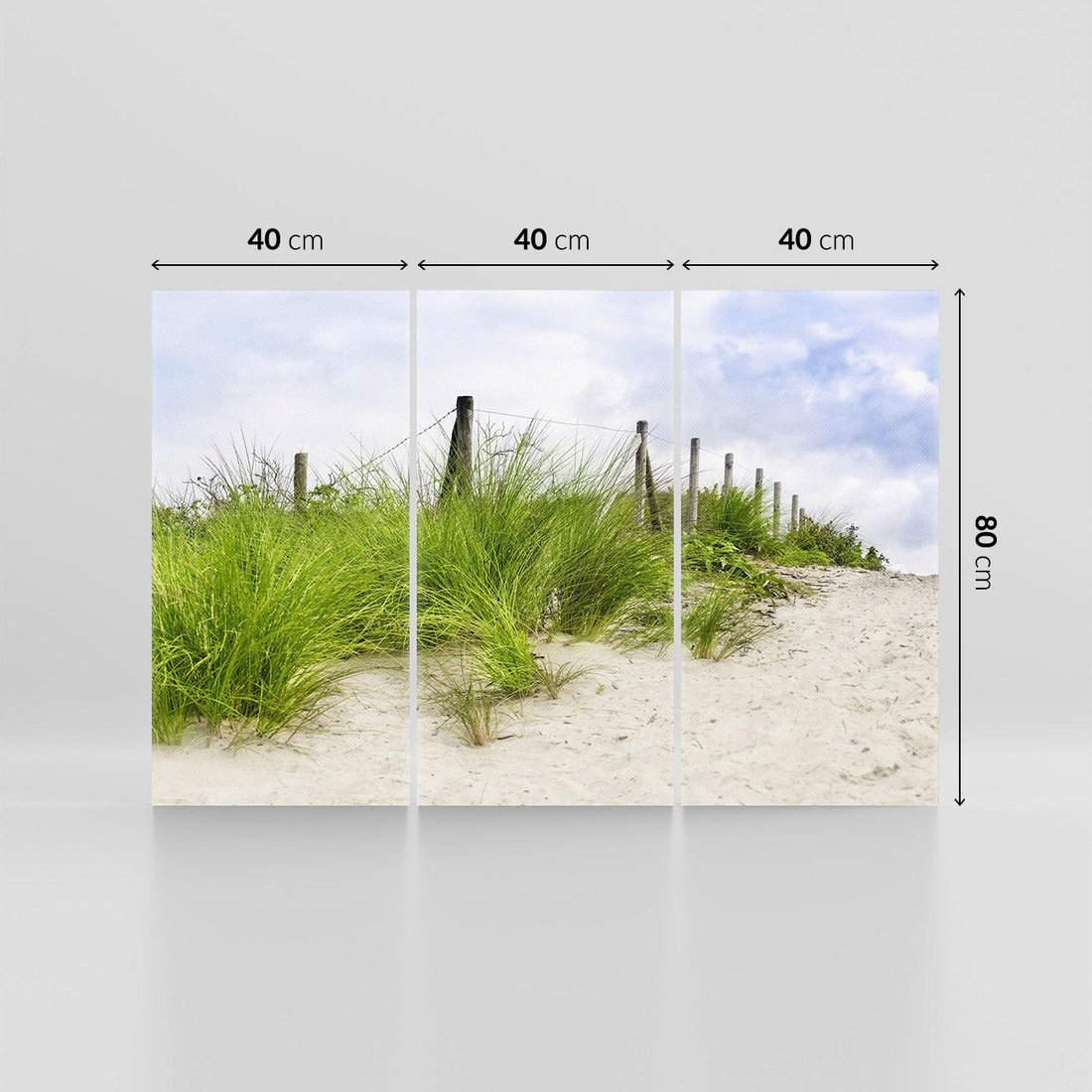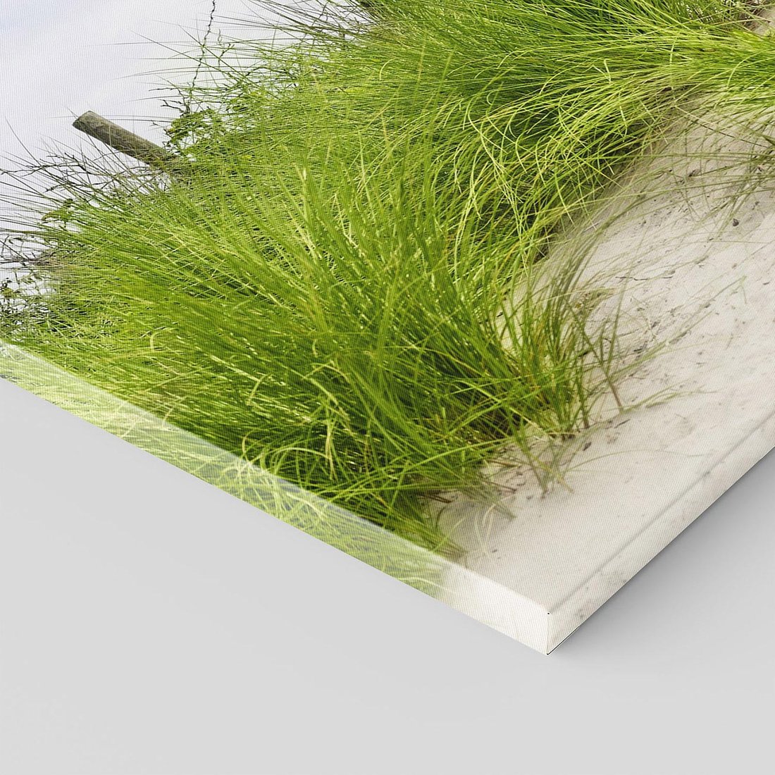 Ten zachwycający obraz na płótnie ukazuje połączenie piaszczystej plaży, wydm i bujnej roślinności. Jego soczyste kolory i kontrastujące tekstury tworzą sielankową scenerię, która przenosi letnią atmosferę i relaks do Twojego wnętrza.