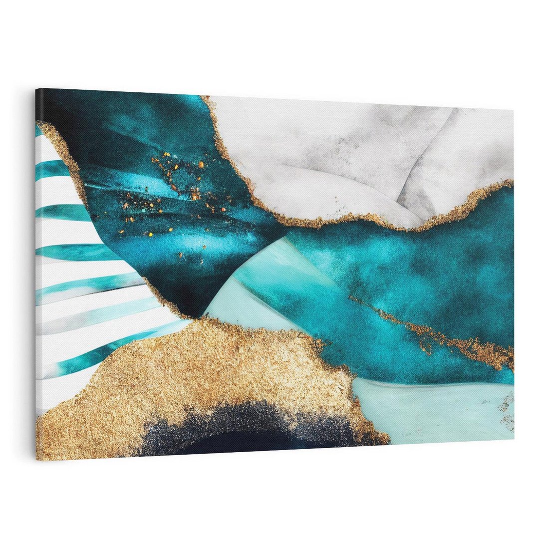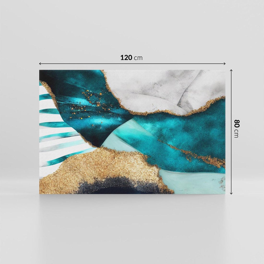 Obraz na płótnie 120x80 - Rozlane Turkusy - Turkusowe plamy, złote elementy