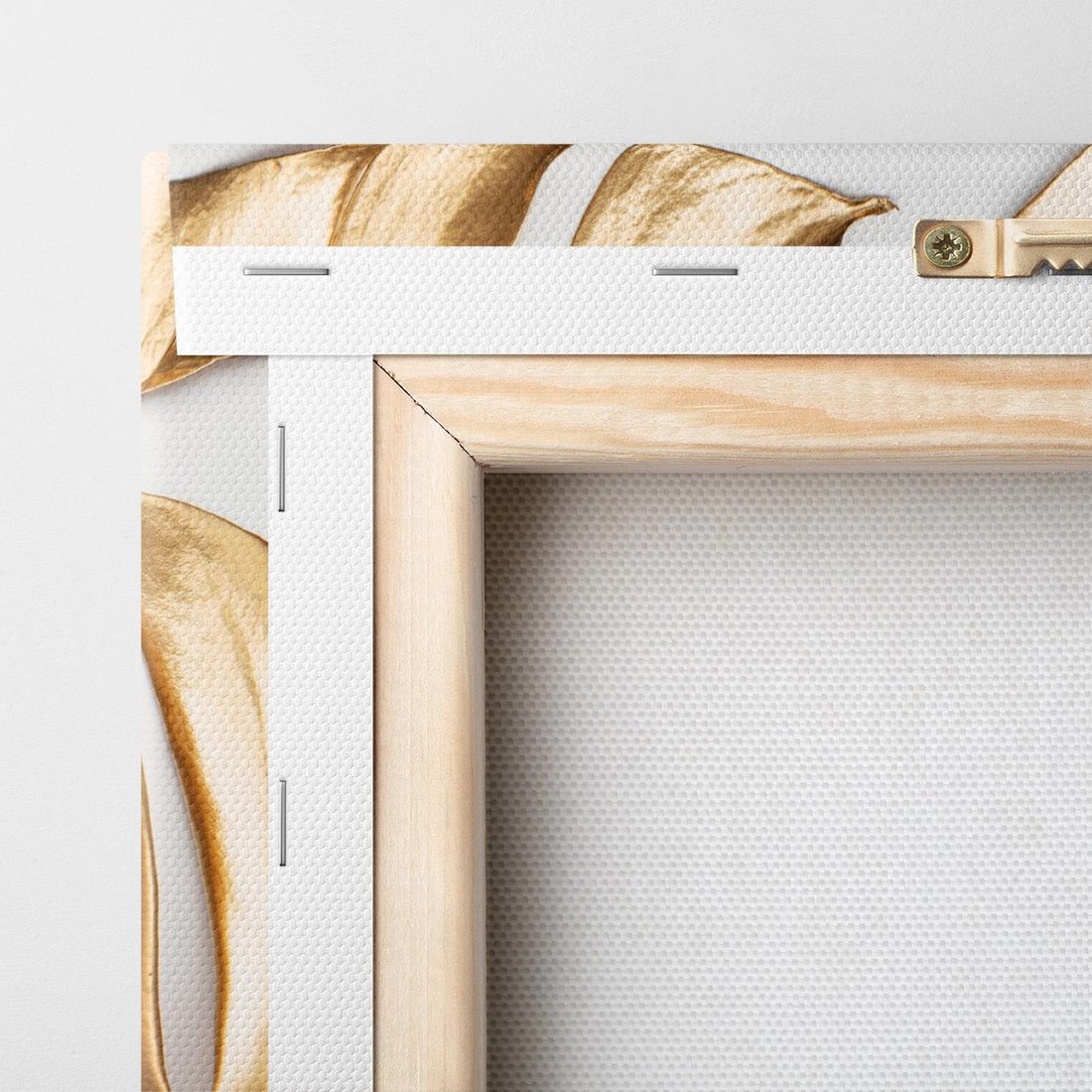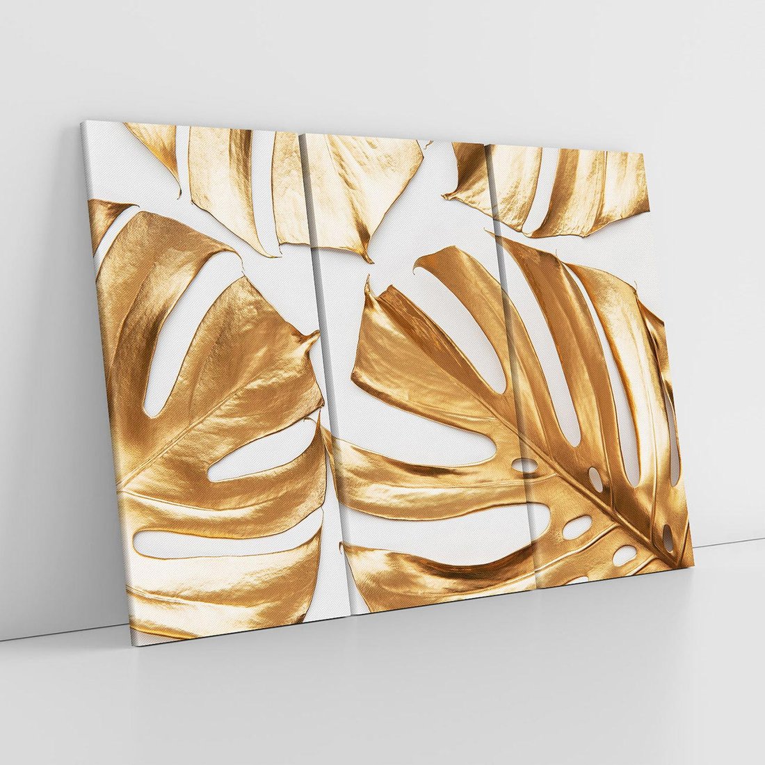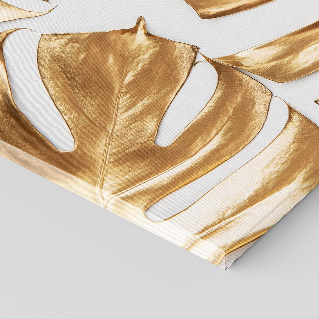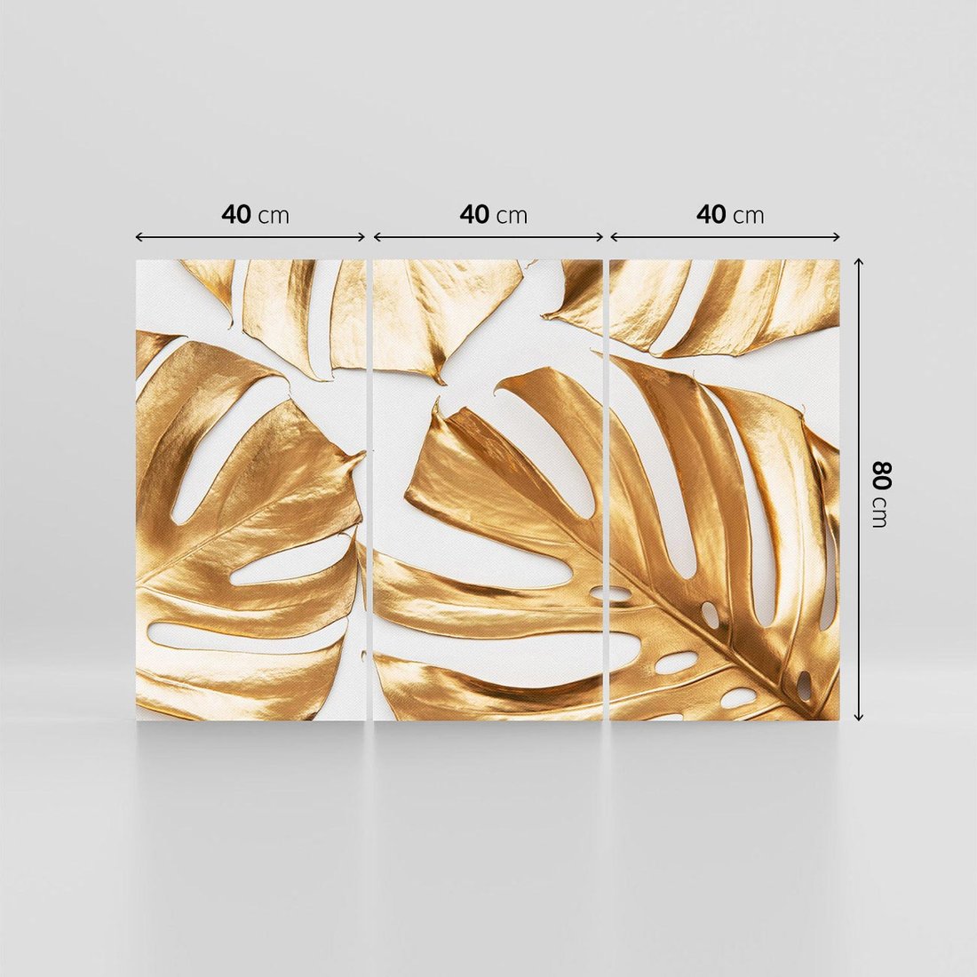 Dodaj ekskluzywności do swojego wnętrza za pomocą obrazu przedstawiającego złote liście monstera. Poczuj magię kontrastu i dodaj subtelności tej wyjątkowej kompozycji.