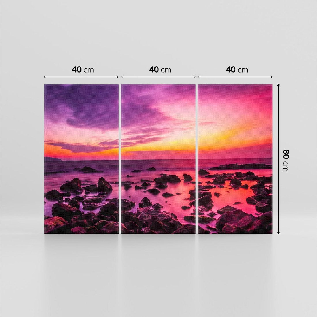 Ten urokliwy obraz przeniesie Cię na brzeg morza, gdzie piękne skały tworzą harmonię z plażą. Ciesz się widokiem ich kontrastu i dodaj odrobinę natury i spokoju do swojego wnętrza tym wyjątkowym obrazem.