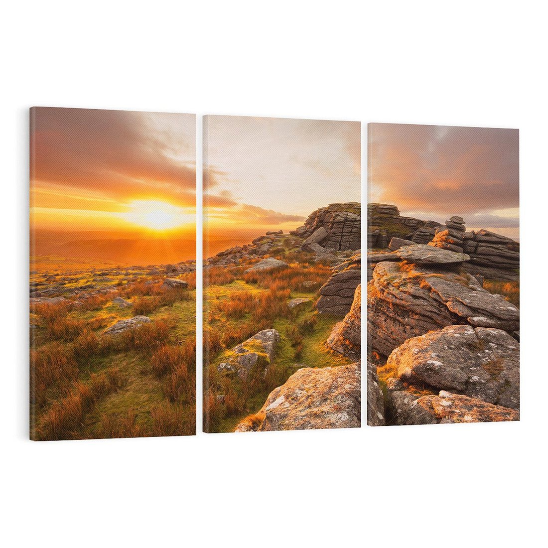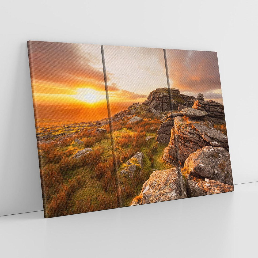 Ten impresjonistyczny obraz na płótnie ukazuje skały oplątane promieniami słońca. Jego ciepłe kolory, kontrast światła i cienia oraz naturalne formacje skalne dodają siły i piękna do Twojego wnętrza. Odczuj moc natury i harmonię krajobrazu w swoim domu.