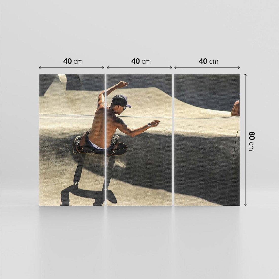 Ten obraz ukazuje pełną energii grę na deskorolce, gdzie wykonuje się różnorodne triki i akrobacje. Skateboard to sport, który wymaga umiejętności, odwagi i determinacji. Przenieś ten dynamiczny duch deskorolkowych wyzwań na swoje ściany, podkreślając swoje zamiłowanie do tego sportu.