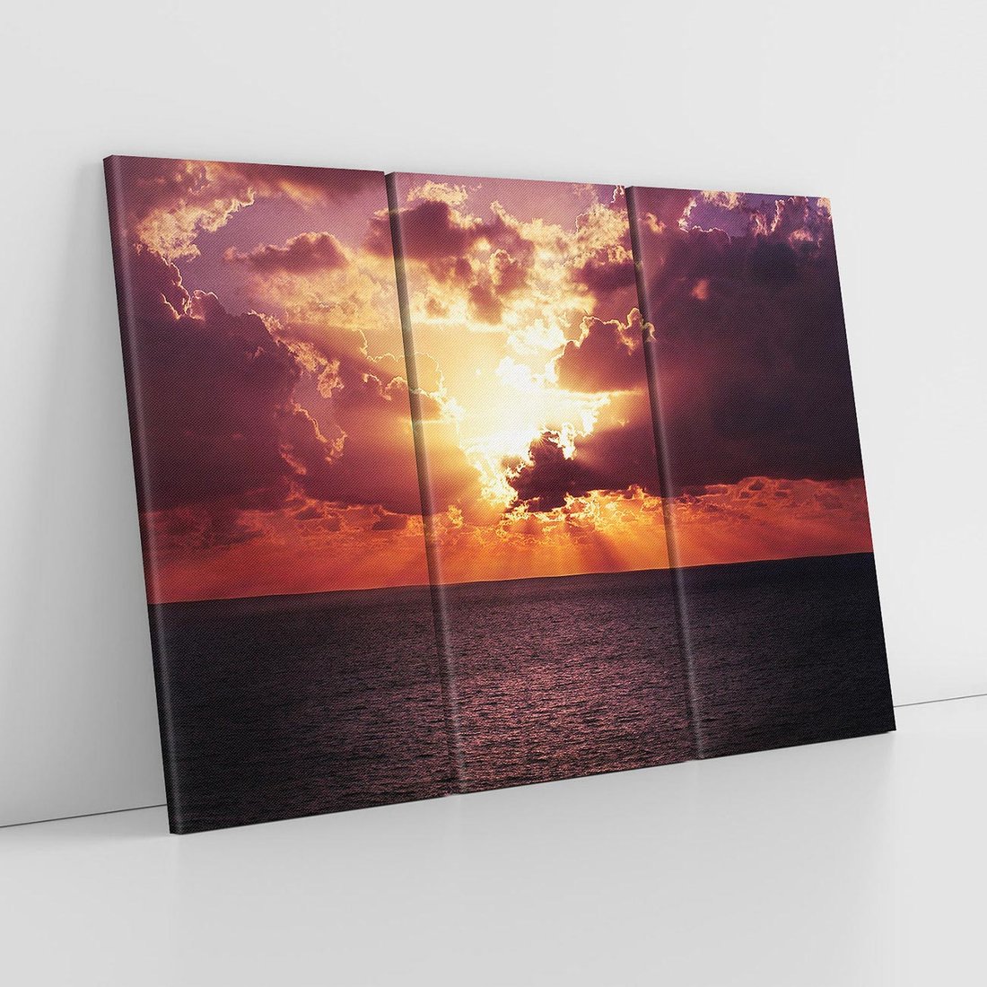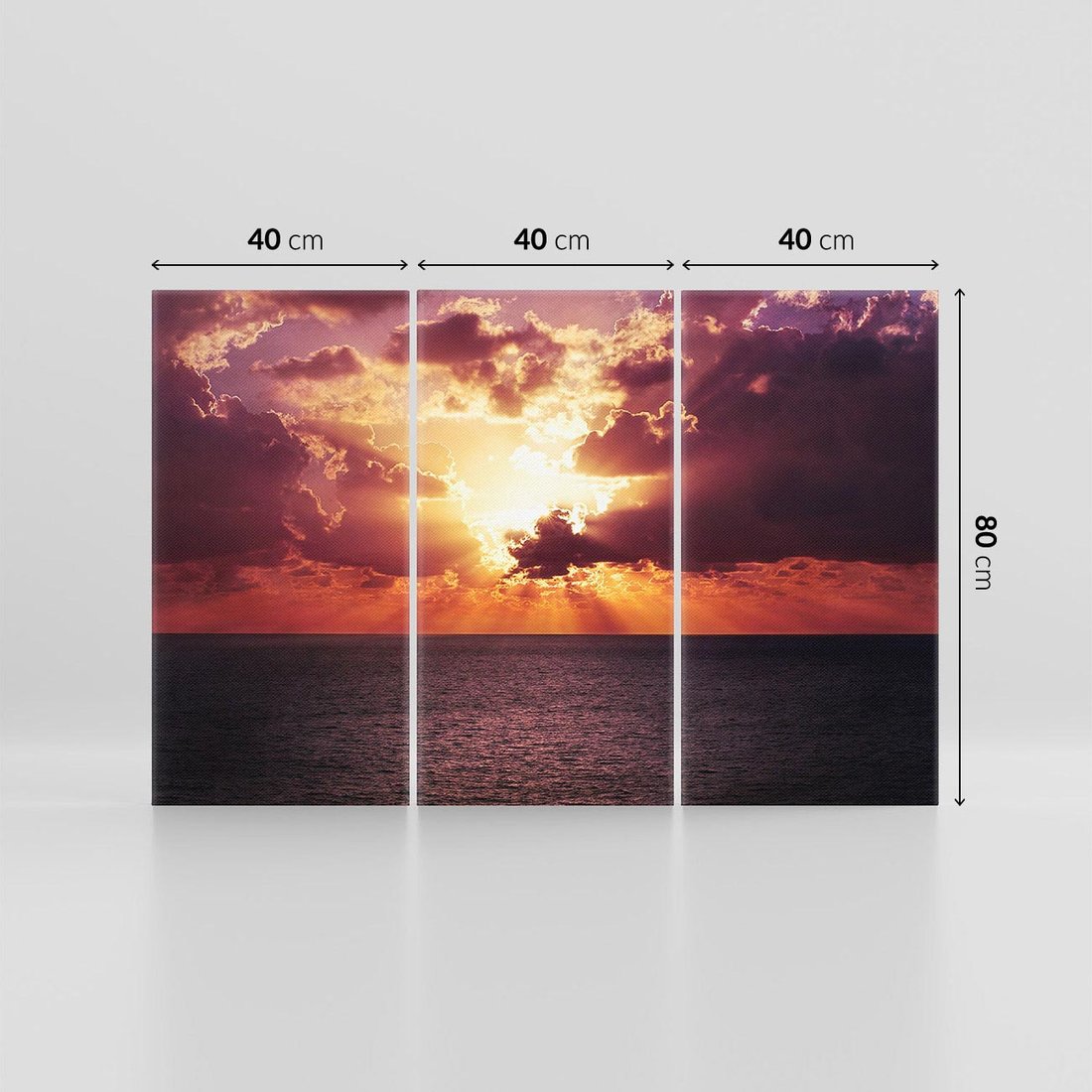 Ten uroczy obraz przeniesie Cię w momenty pięknych zachodów słońca nad morzem, gdzie słońce przebija się przez chmurki. Ciesz się widokiem ich kontrastu i dodaj odrobinę magii natury do swojego wnętrza tym wyjątkowym obrazem.