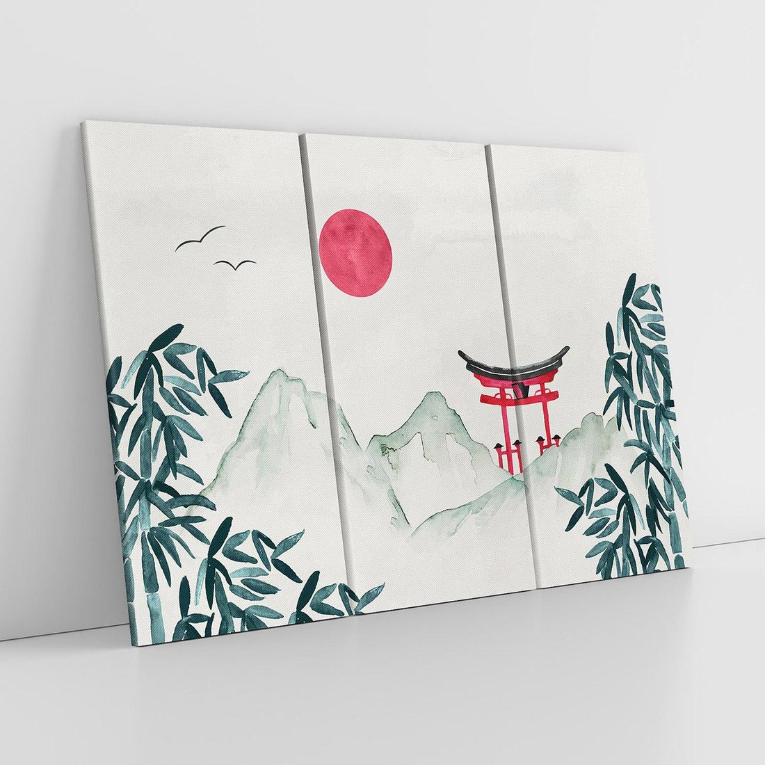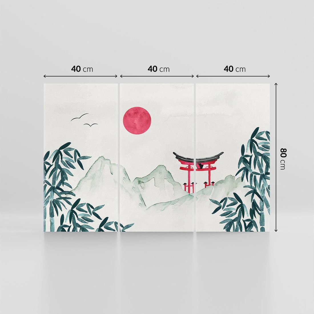 Ten obraz na płótnie przenosi nas do malowniczego krajobrazu Japonii. Akwarelowa sztuka ukazuje majestatyczne góry w ciepłym blasku słońca. W oddali widzimy urokliwą japońską świątynię, która dodaje spokoju i ducha harmonii temu pięknemu dziełu sztuki. To idealna dekoracja, aby wprowadzić atmosferę spokoju i natury do Twojego wnętrza.