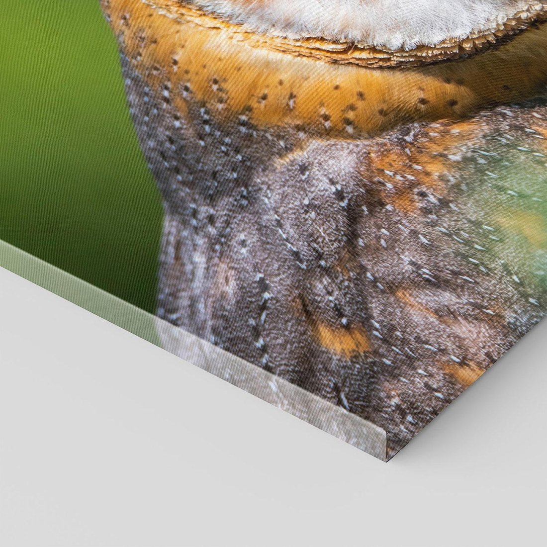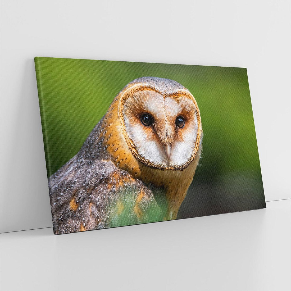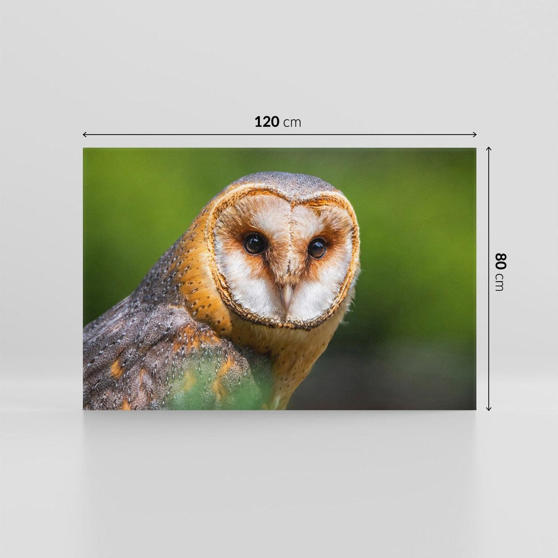 Ta wspaniała sowa ukazana na obrazie siedzi spokojnie w gęstym liściastym zagajniku. Jej skupione spojrzenie i subtelna gra świateł i cieni tworzą niesamowity efekt trójwymiarowego obrazu. To dzieło sztuki przyciąga uwagę i wywołuje uczucie spokoju, idealne jako punkt centralny w eleganckim wnętrzu.