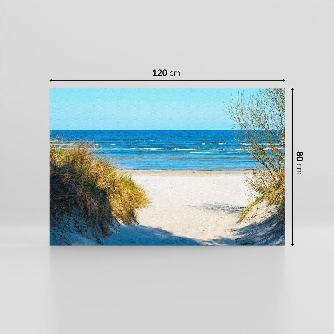 Przenieś się na spokojną plażę nad morzem dzięki temu uroczemu obrazowi. Z błękitem nieba i złocistym piaskiem, tworzy atmosferę wakacyjnego odpoczynku i relaksu. Ta kompozycja dodaje harmonii i piękna natury, idealna dla miłośników plażowania i nadmorskiego krajobrazu.