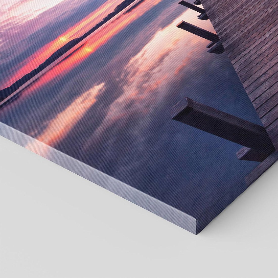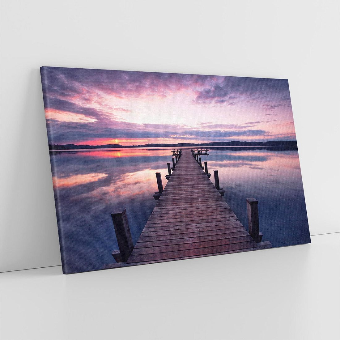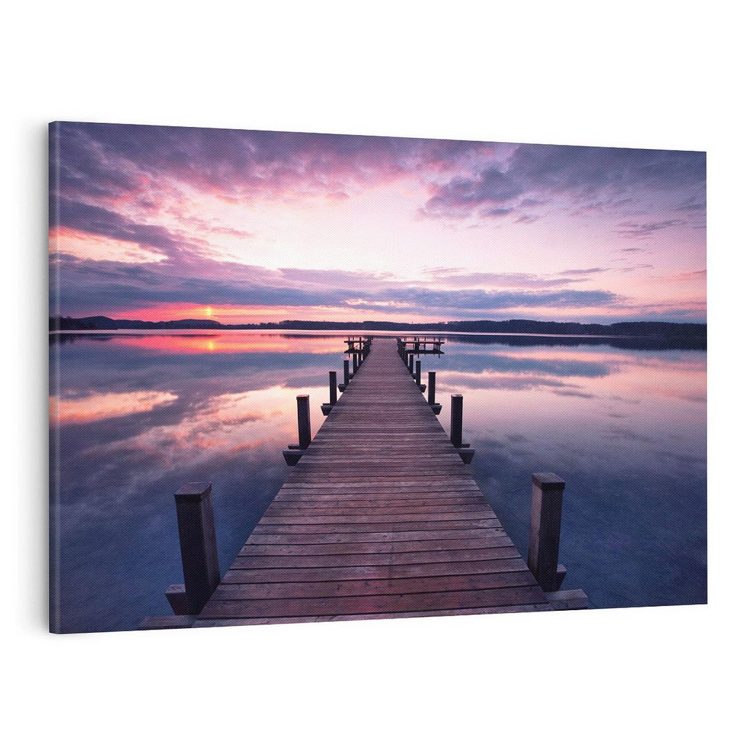 Odkryj urok jeziora dzięki temu malowniczemu obrazowi przedstawiającemu molo. Spokojna woda, malownicze krajobrazy i sielankowa atmosfera tworzą niezapomniany pejzaż. Ta kompozycja dodaje harmonii i bliskości natury, idealna dla osób pragnących poczuć spokój i delektować się widokiem jeziora i molo.