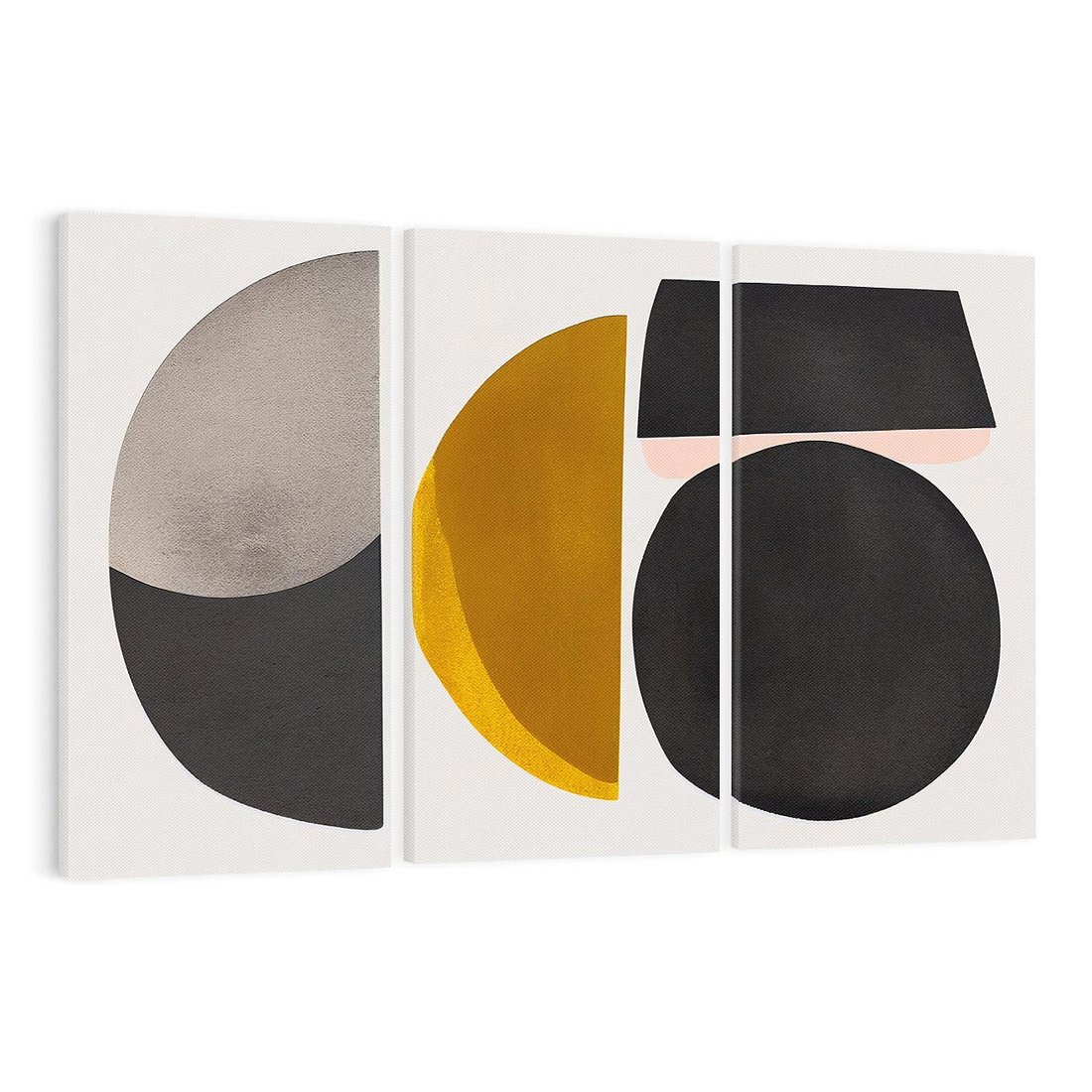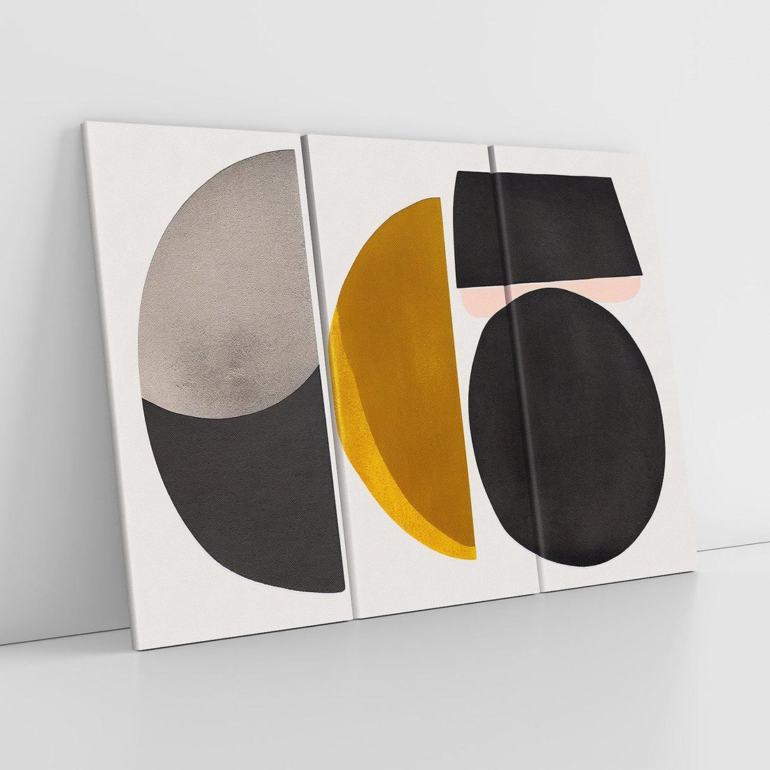 Zachwycający obraz przedstawiający nowoczesną abstrakcję z geometrycznymi półkolami i kształtami w intensywnych kolorach żółtym i czarnym na beżowym tle. Doskonały wybór dla miłośników sztuki poszukujących unikalnej i wyrazistej dekoracji do nowoczesnych przestrzeni. Geometryczna precyzja i harmonia barw przyciągają wzrok i nadają wnętrzu nowoczesnego charakteru.