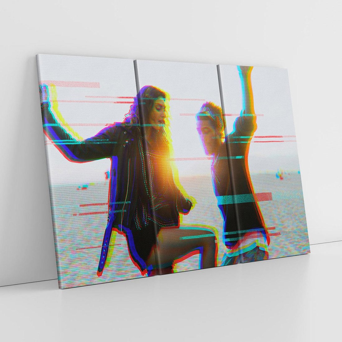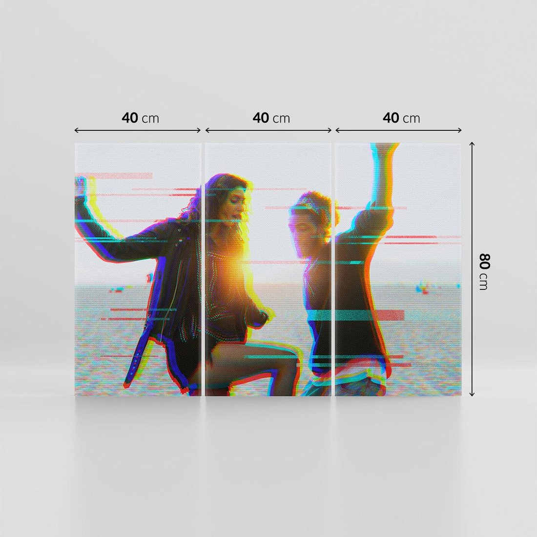 Odkryj nostalgiczny obraz w stylu retro, który przedstawia parę młodych ludzi tańczących na plaży. Zdjęcie ożywione jest dodatkowymi kolorowymi akcentami, tworząc kolaż o vintage charakterze. To wyjątkowe dzieło sztuki stworzone dla miłośników estetyki retro, pragnących wnieść ciekawy akcent do swoich wnętrz. Doskonały sposób na podróż w czasie i zachwyt nad chwilami pełnymi szczęścia.