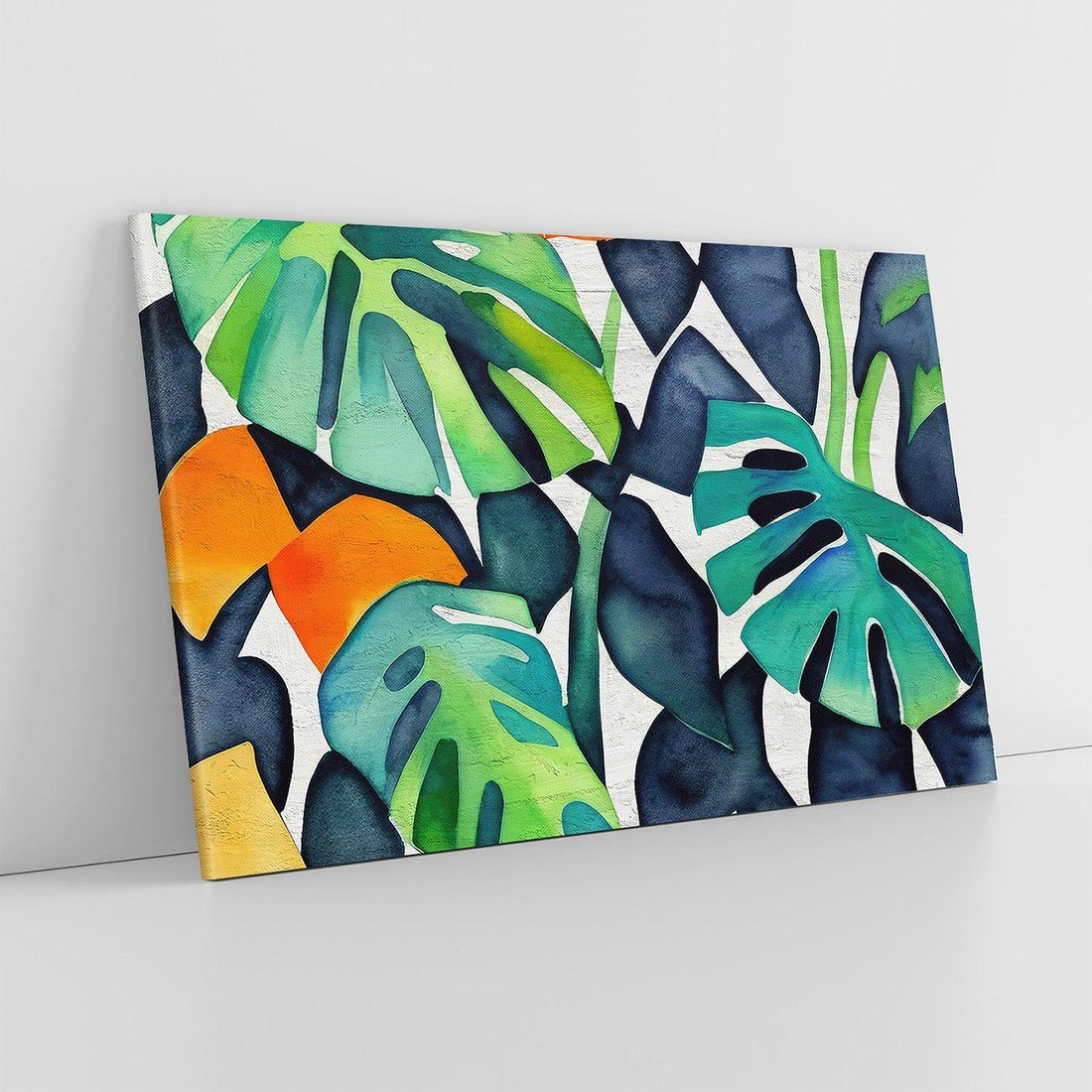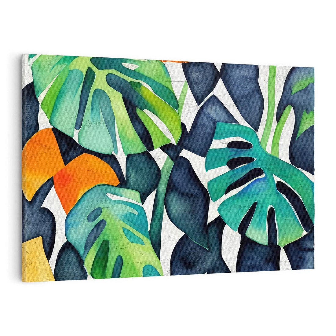 Obraz na płótnie 120x80 - Tropikalne Pragnienia - akwarela, liście tropikalne
