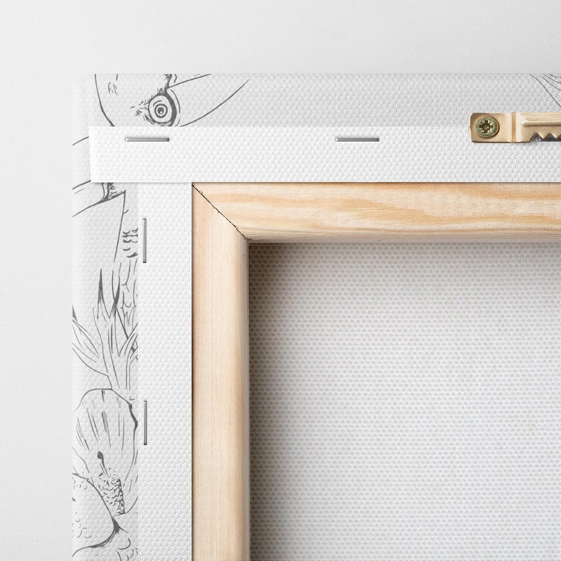 Ten czarno-biały szkic na płótnie przenosi Cię do tropikalnej dżungli, gdzie spotkasz egzotyczne ptaki, kwiaty i zwierzęta. Idealny dla miłośników monochromatycznego i klasycznego wnętrza.