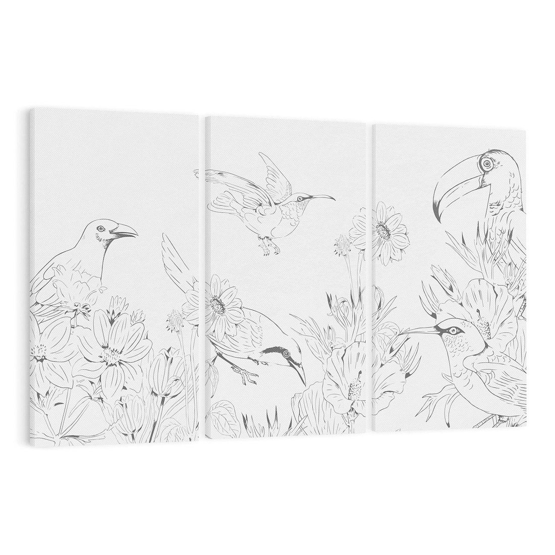 Obraz na płótnie 120x80 - Tropiki w Monochromie - czarno biały szkic, tropikalne ptaki