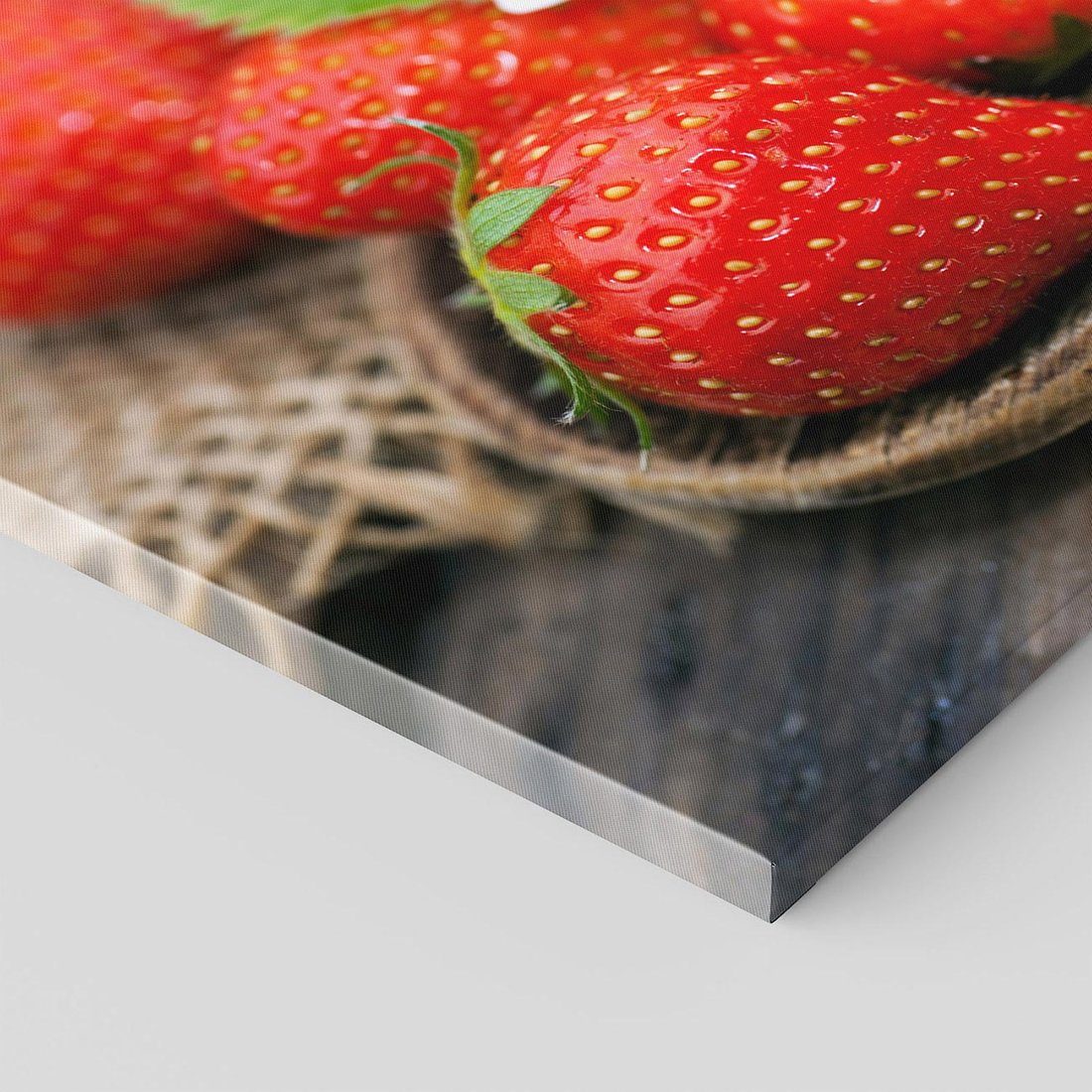 Przywołaj smakowite uczucia dzięki temu uroczemu obrazowi przedstawiającemu soczyste truskawki. Intensywne kolory, krople rosy i słodki smak tworzą owocową ekstazę. Ta kompozycja dodaje świeżości i smaków, idealna dla miłośników owocowych delicji i przyjemności dla podniebienia.