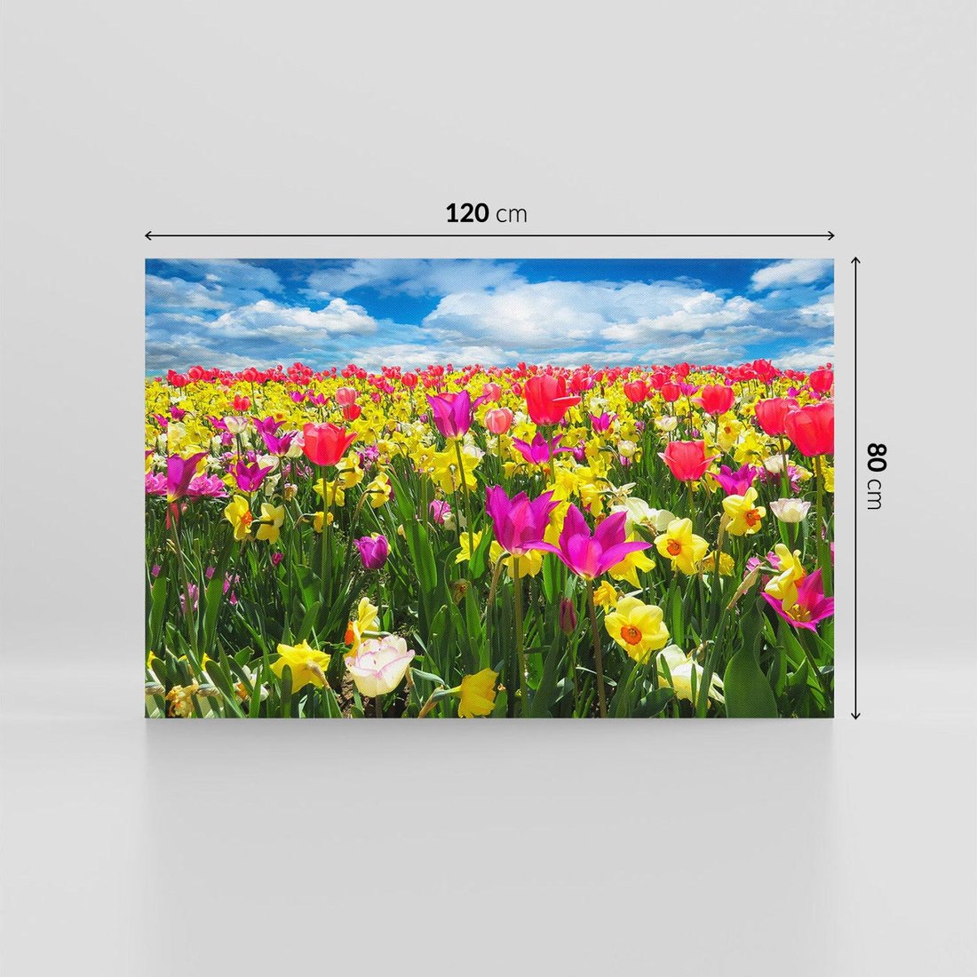 Obraz na płótnie 120x80 - tulipany na łące - kwiaty, tulipany