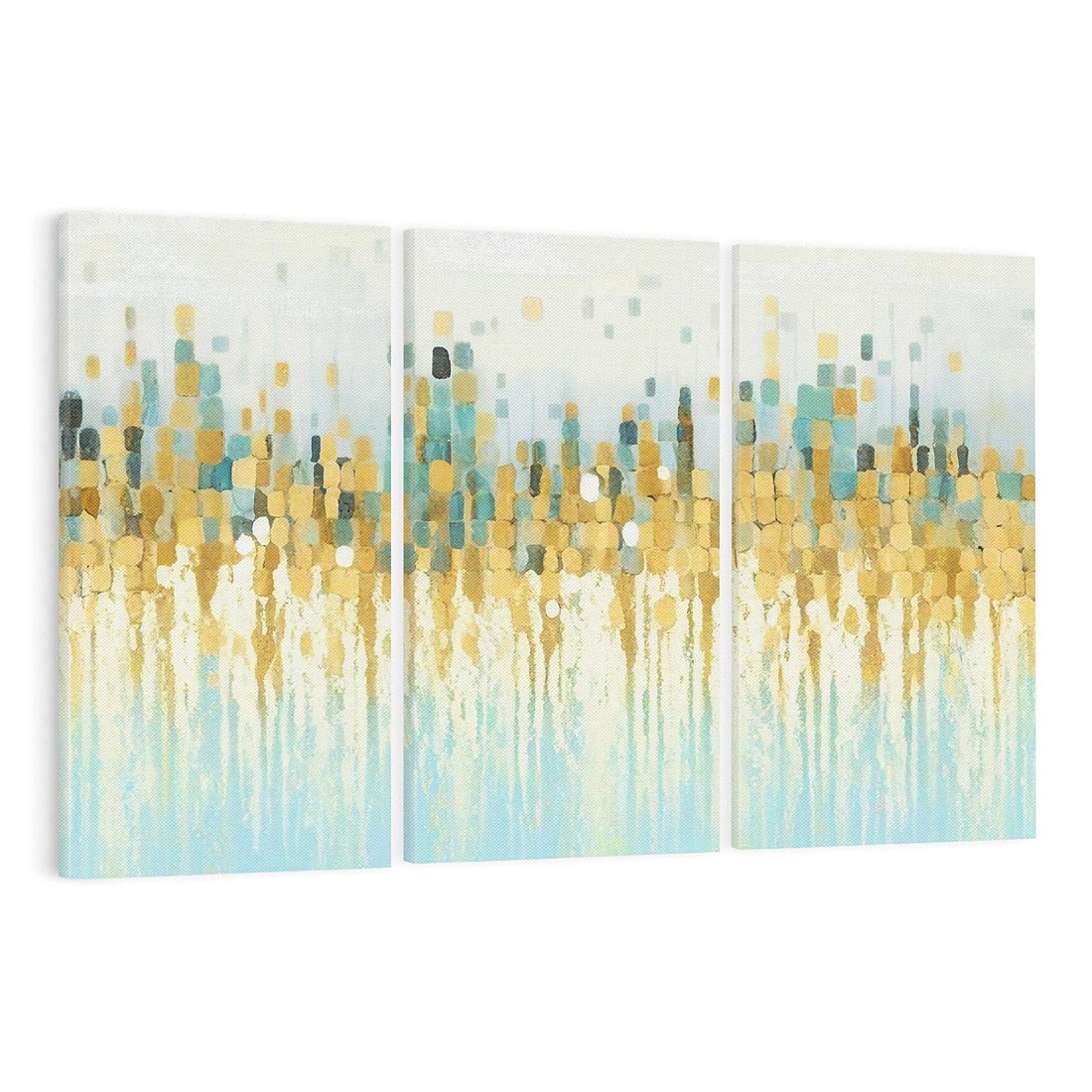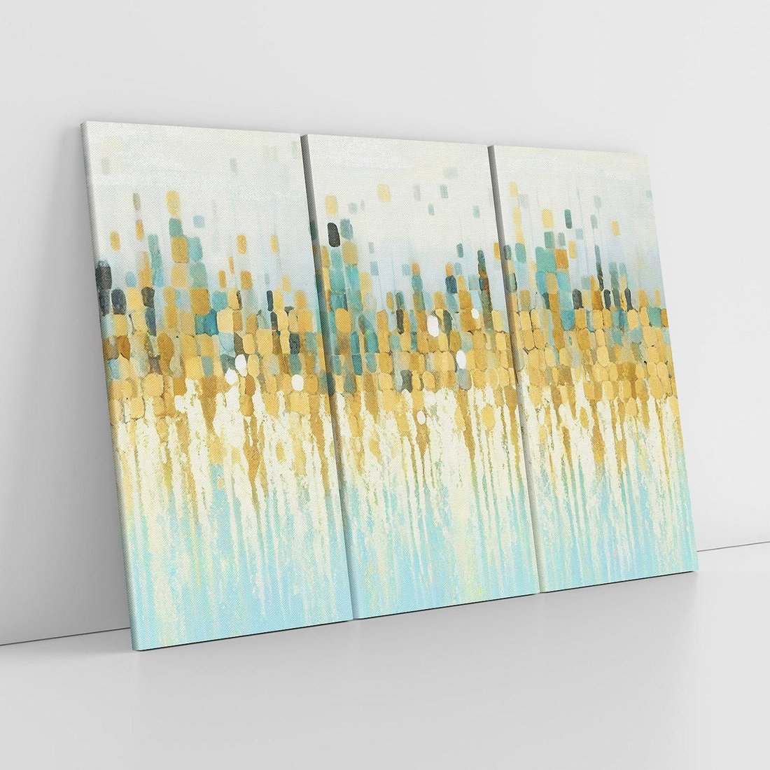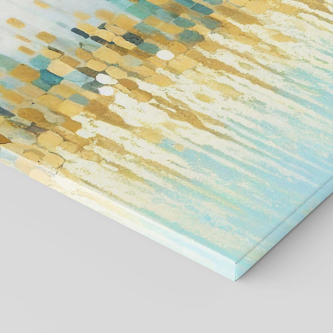 Ten abstrakcyjny obraz w nowoczesnym stylu, z geometrycznymi plamkami w odcieniach złota, emanuje harmonią i spokojem. Jego świeży design stanie się doskonałym akcentem dekoracyjnym, dodając elegancji i wyrafinowania każdemu wnętrzu.