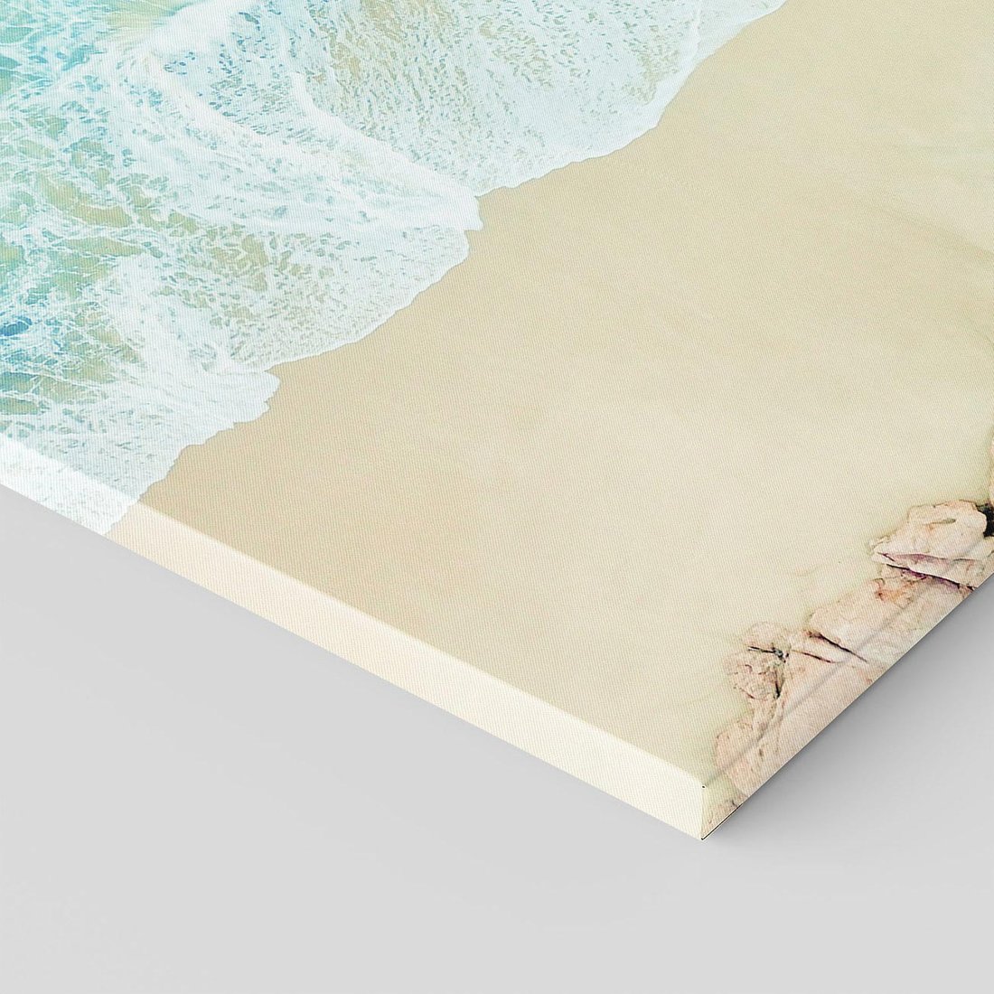 Odkryj urok nadmorskiej przygody dzięki temu fascynującemu obrazowi. Widok z lotu ptaka ukazuje turkusową wodę i błyszczącą plażę. To dzieło sztuki stworzone dla miłośników morskich krajobrazów i spokoju. Doskonały akcent dla tych, którzy pragną wprowadzić do swojego wnętrza powiew świeżego powietrza i uroku morskich pejzaży.