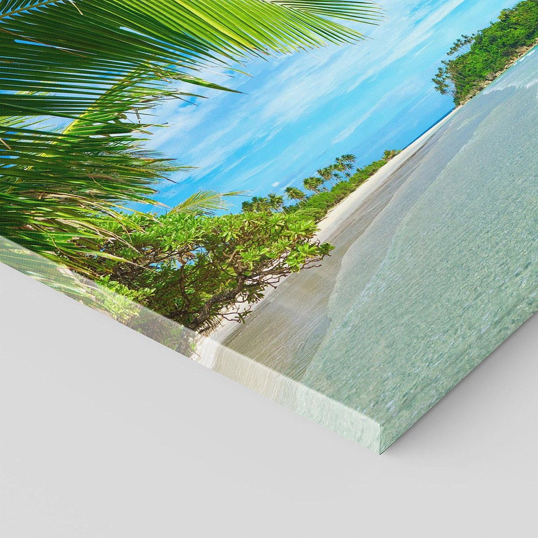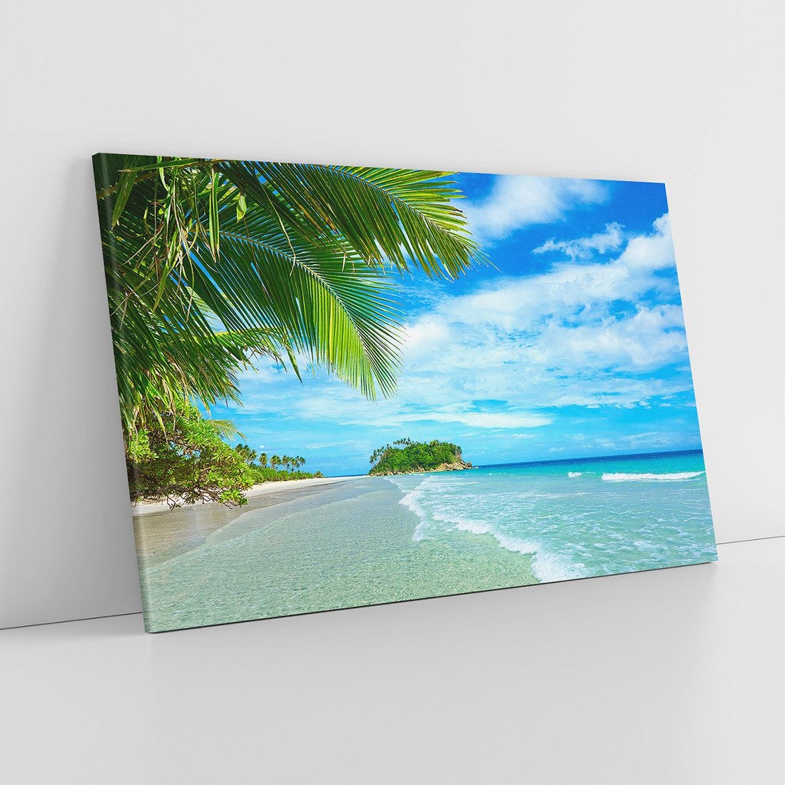 Ożyw swoje wnętrze tym kolorowym obrazem przedstawiającym tropikalną wyspę z plażą i palmami. Egzotyczne kolory, relaksujący widok i paradoksalne spokój tworzą rajską atmosferę. Ta kompozycja dodaje wakacyjnego klimatu i ucieczki od codzienności, idealna dla miłośników rajskich przygód i beztroskiego wypoczynku.