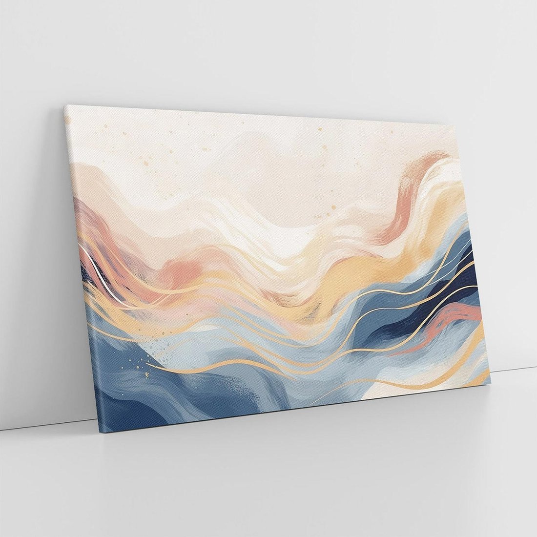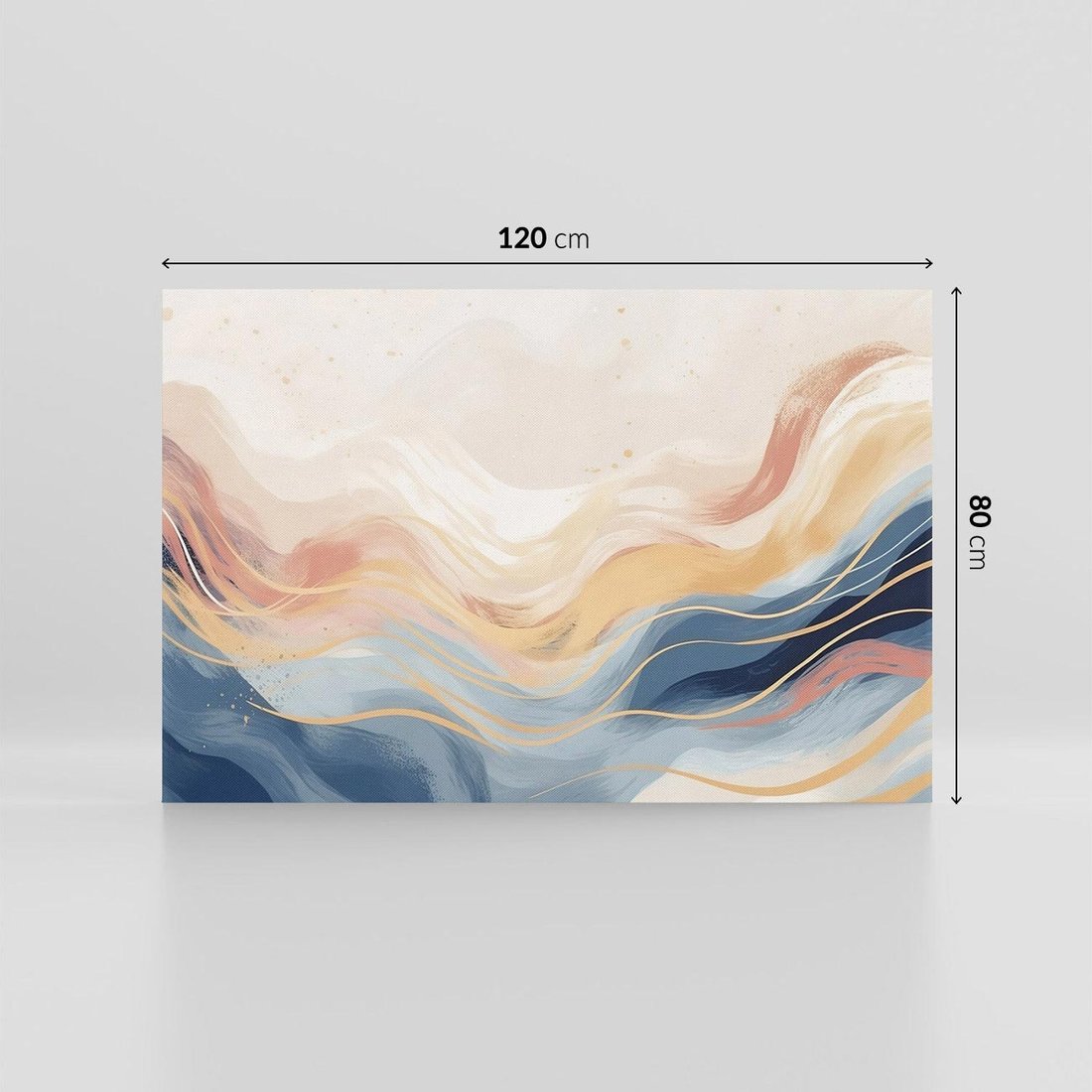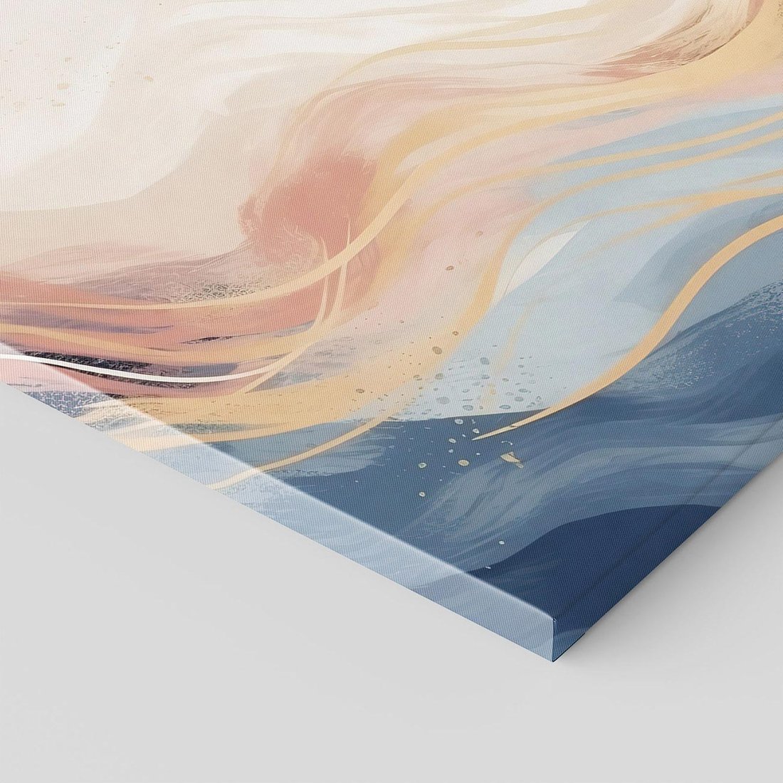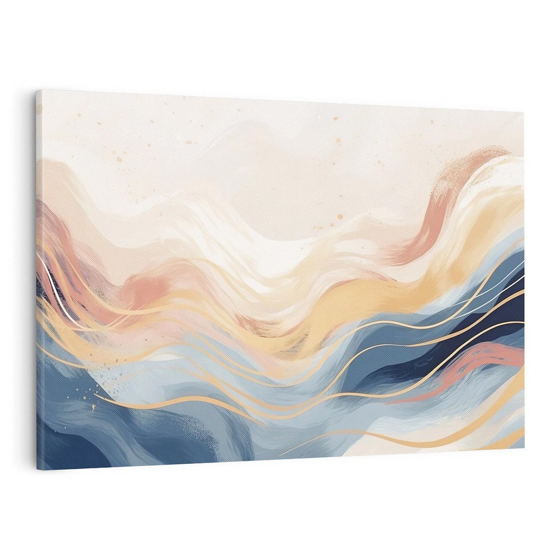 Odkryj elegancję w subtelnych abstrakcyjnych falach na płótnie. Gładkie linie tworzą klasyczne kształty, a delikatne pastelowe kolory dodają przyjemnej atmosfery, idealnej do ozdobienia Twojego domu.