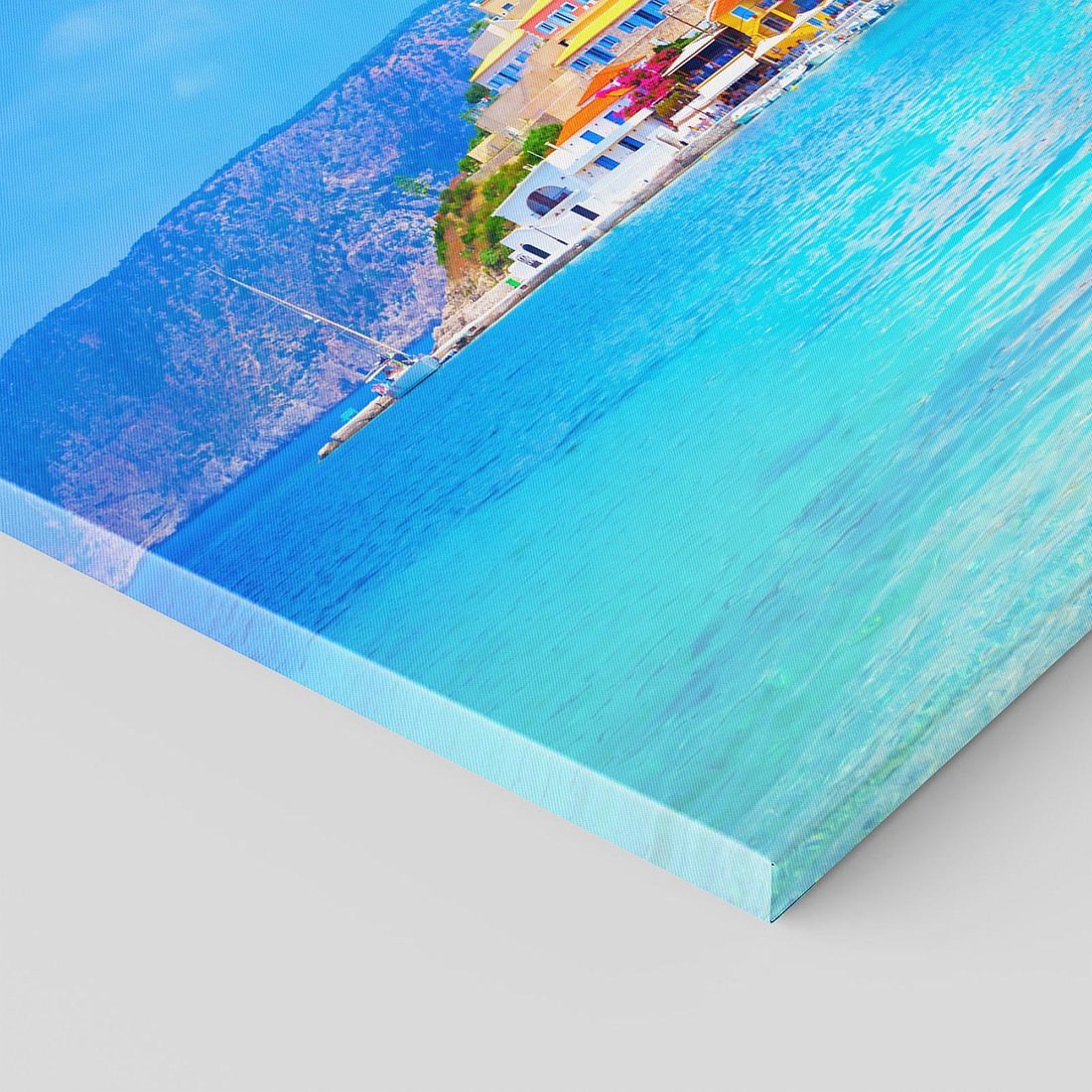 Przenieś się do malowniczej Grecji dzięki temu uroczemu obrazowi przedstawiającemu wyspy otoczone lazurowym morzem. Białe domy, niebieskie dachy i romantyczna atmosfera tworzą sielankową aurę. Ta kompozycja dodaje wakacyjnego charakteru i relaksujących wrażeń, idealna dla osób pragnących poczuć magię greckiego archipelagu w swoim wnętrzu.