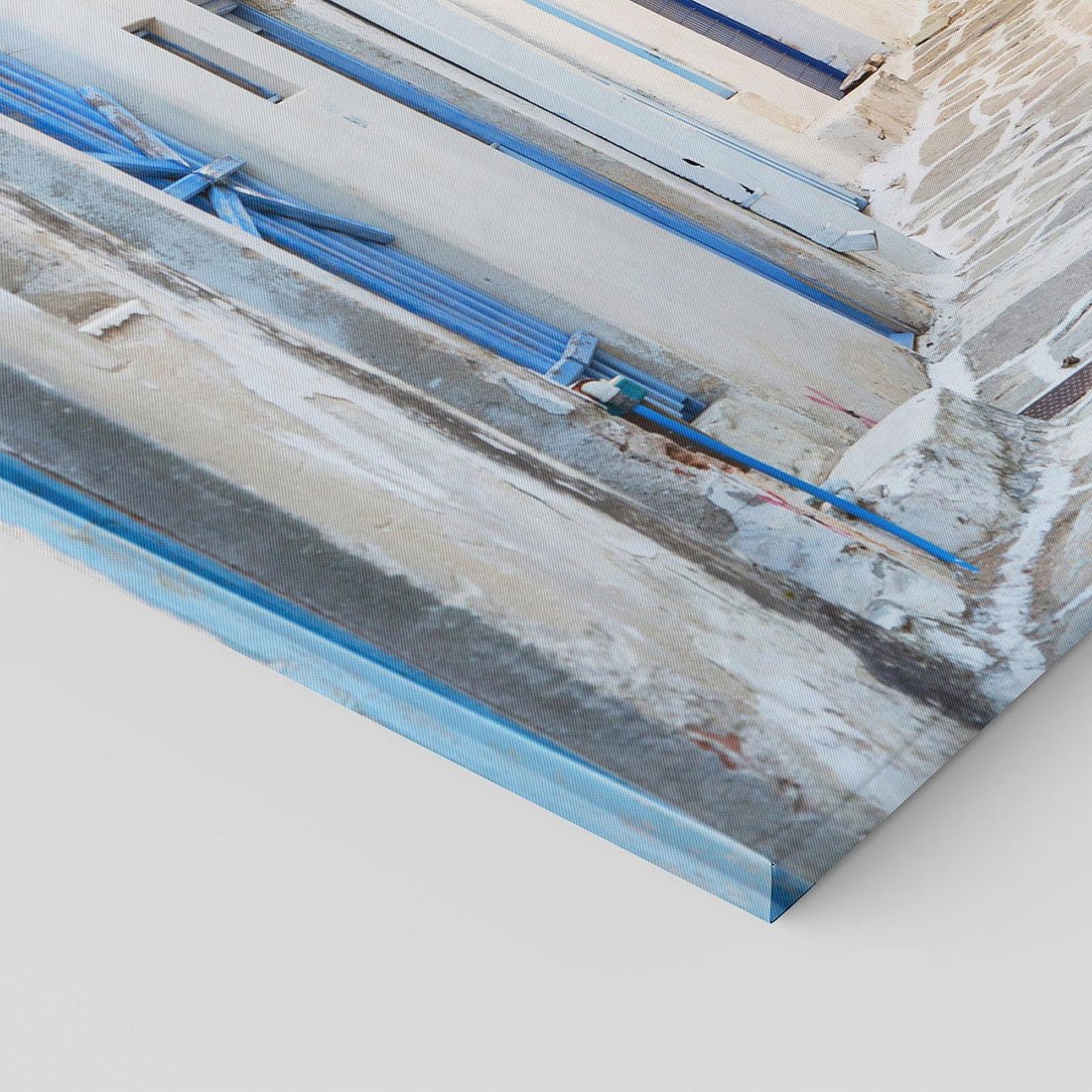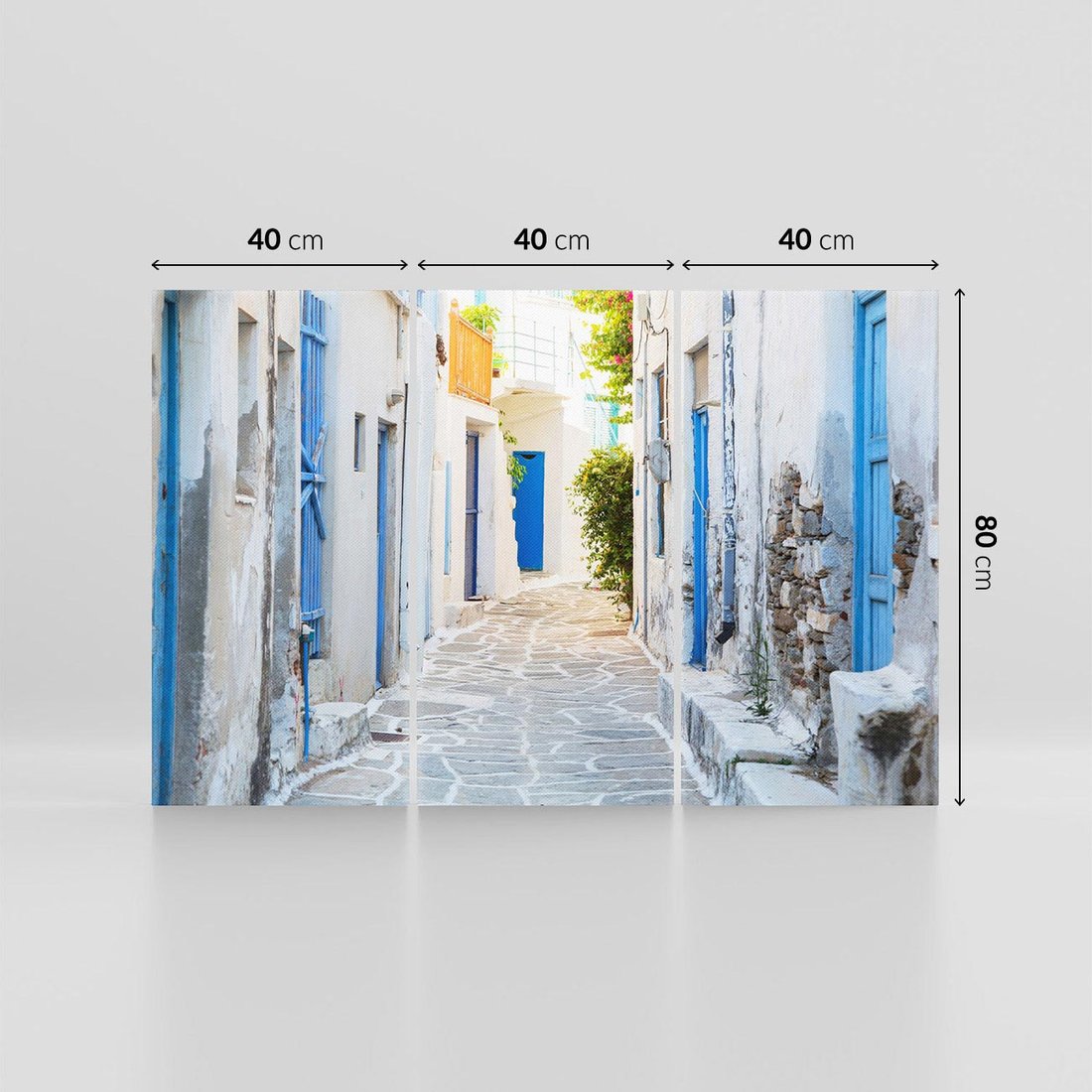 Odkryj urok greckiego miasta dzięki temu malowniczemu obrazowi przedstawiającemu uroczą uliczkę na wyspie. Błękitne dachy, kolorowe fasady i tradycyjny charakter tworzą niepowtarzalną atmosferę. Ten obraz dodaje śródziemnomorskiego uroku i ciepła, idealny dla miłośników greckiej kultury i podróży.