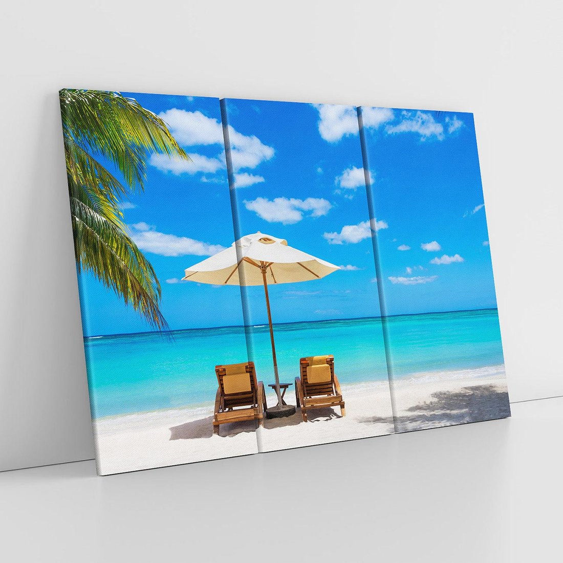 Przenieś się na egzotyczną plażę dzięki temu ujmującemu obrazowi na płótnie. Palma i kolorowe parasole nadają tropikalny klimat, a piasek i turkusowa woda dodają spokoju i świeżości. Dodaj odrobinę raju do swojego wnętrza.