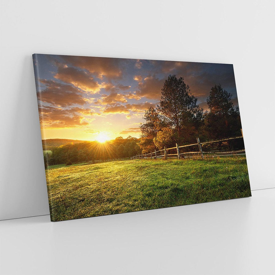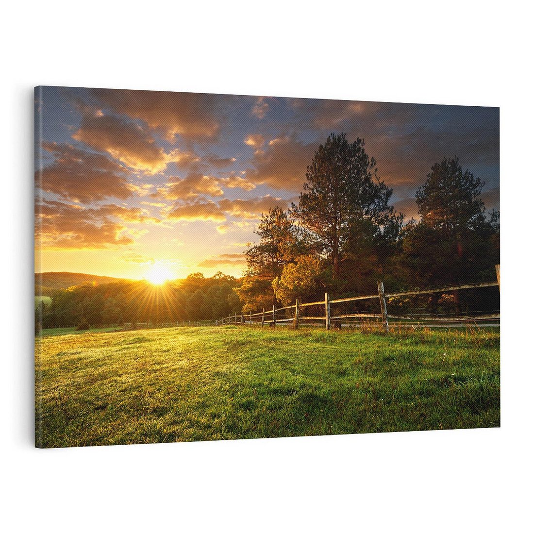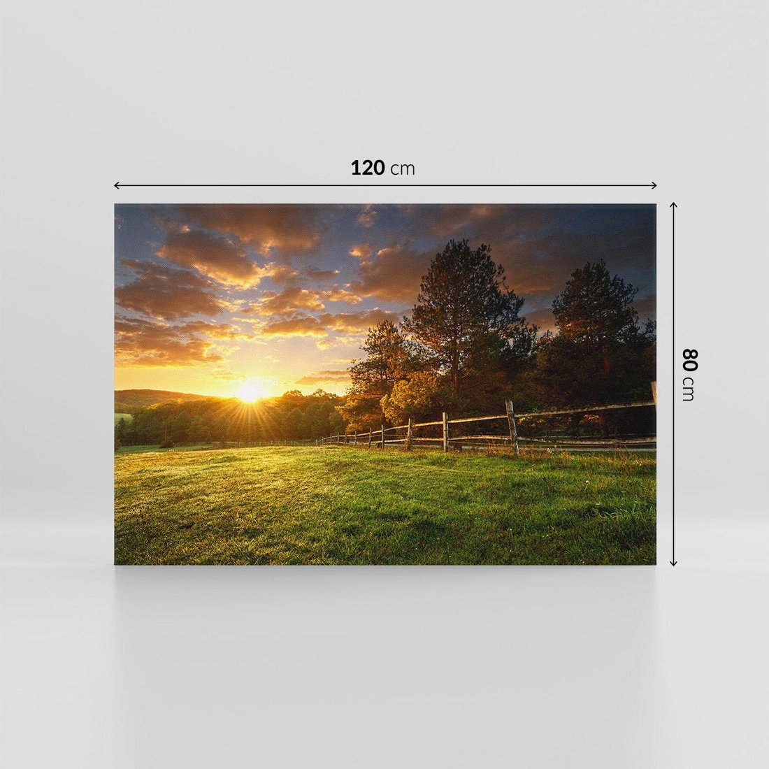 - Obraz na płótnie 120x80 - Urok zachodu słońca na łące z drzewami