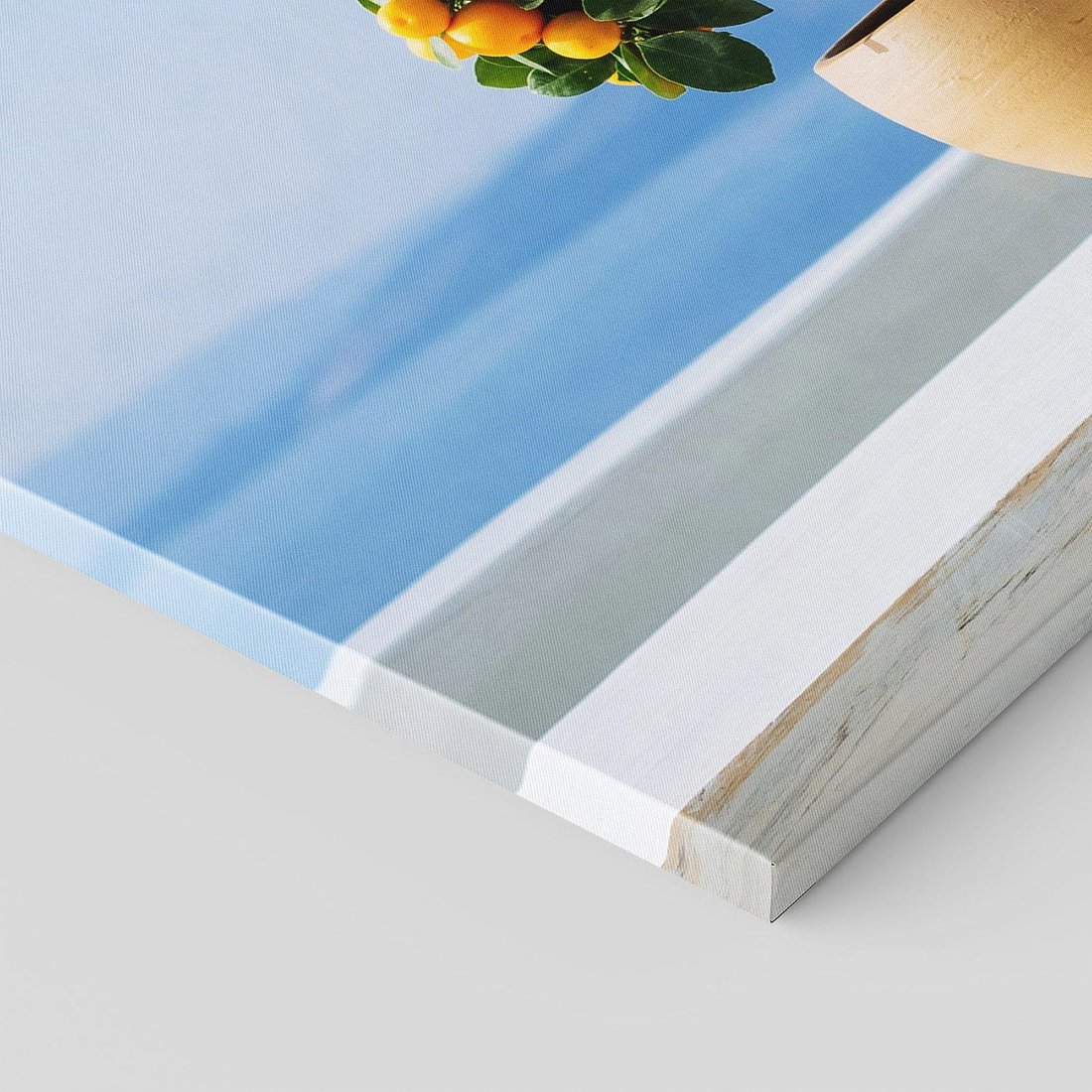 Ten malowniczy obraz ukazuje piękno wyspy Santorini w Grecji. Białe domy, niebieskie kopuły i wspaniałe widoki nadają wnętrzu świeżości i uroku greckiego krajobrazu. Doskonały wybór dla miłośników podróży i romantycznego klimatu.