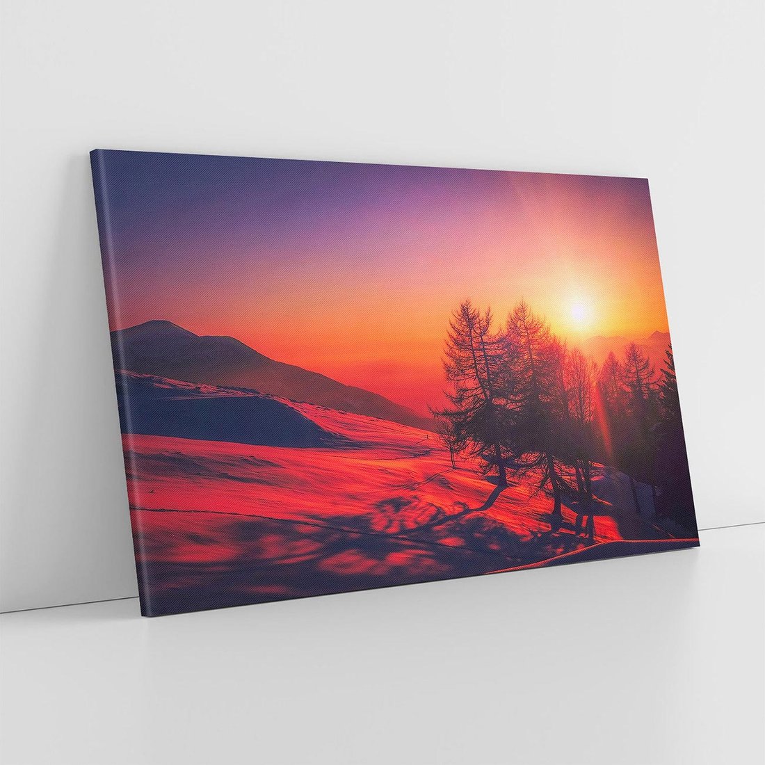 Obraz na płótnie ukazujący zaspy śniegu i malowniczy krajobraz zimowy. Ta kompozycja w błękitach i bielach przyniesie chłodną, ale jednocześnie urokliwą atmosferę do przestrzeni.