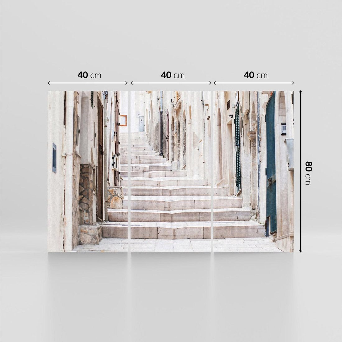Odkryj urokliwą uliczkę w perspektywie dzięki temu uroczemu obrazowi. Z kolorowymi fasadami i artystycznym nastrojem, ożywia przestrzeń. Ta kompozycja dodaje uroku i miejskiego charakteru, idealna dla miłośników spacerów po urokliwych uliczkach i architektury.