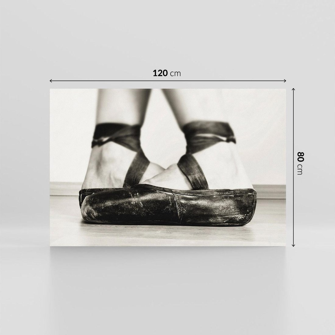 Ta czarno-biała fotografia uchwyciła piękno i delikatność baletnicy w bliskim zbliżeniu na jej stopy. W czarnych zabrudzonych baletkach widać wytrzymałość i poświęcenie dla tańca. Monochromatyczna paleta podkreśla klasykę i elegancję tego momentu, tworząc wyjątkową i pełną emocji kompozycję.