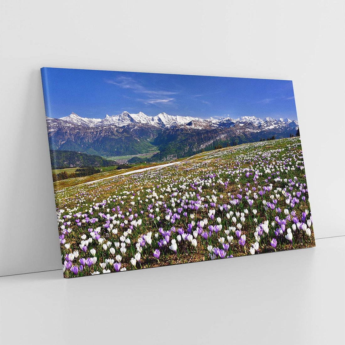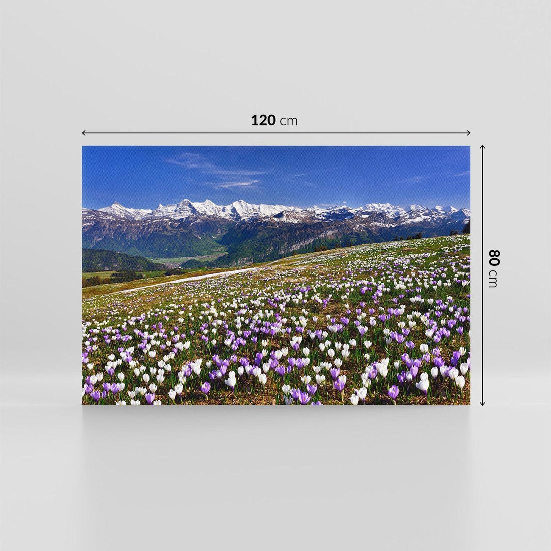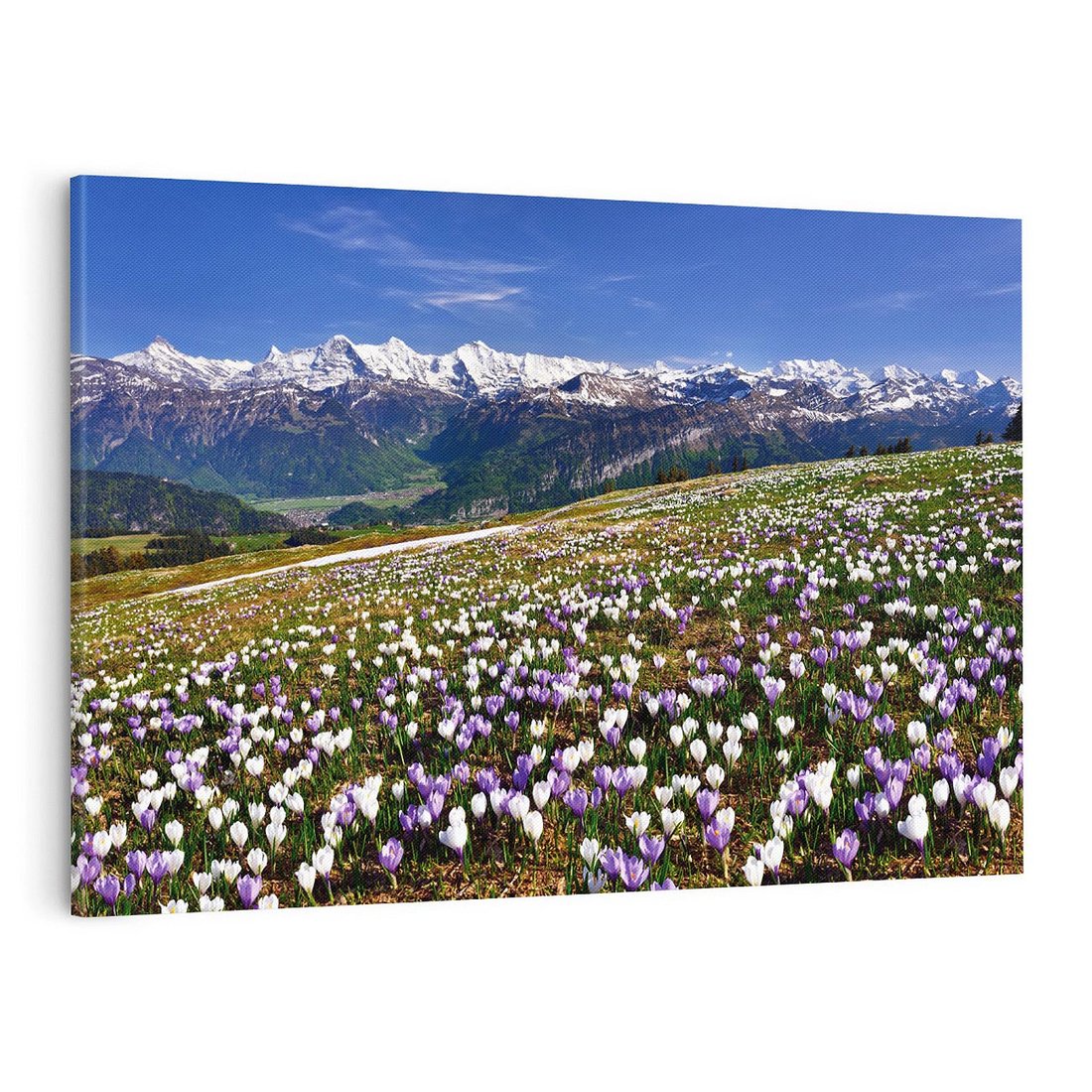 Obraz na płótnie 120x80 - Wiosenne Czarowanie - krokusy, góry