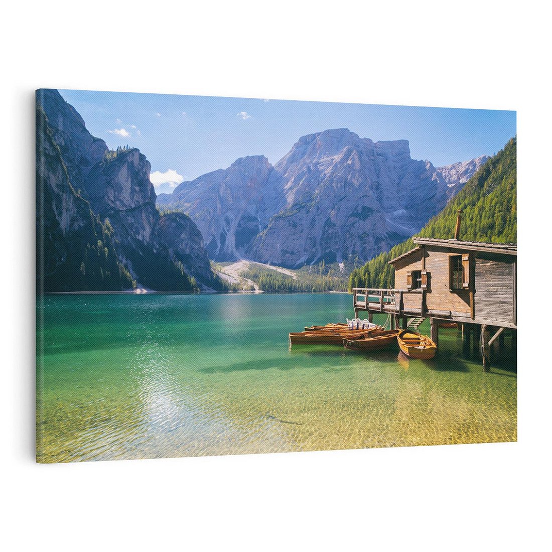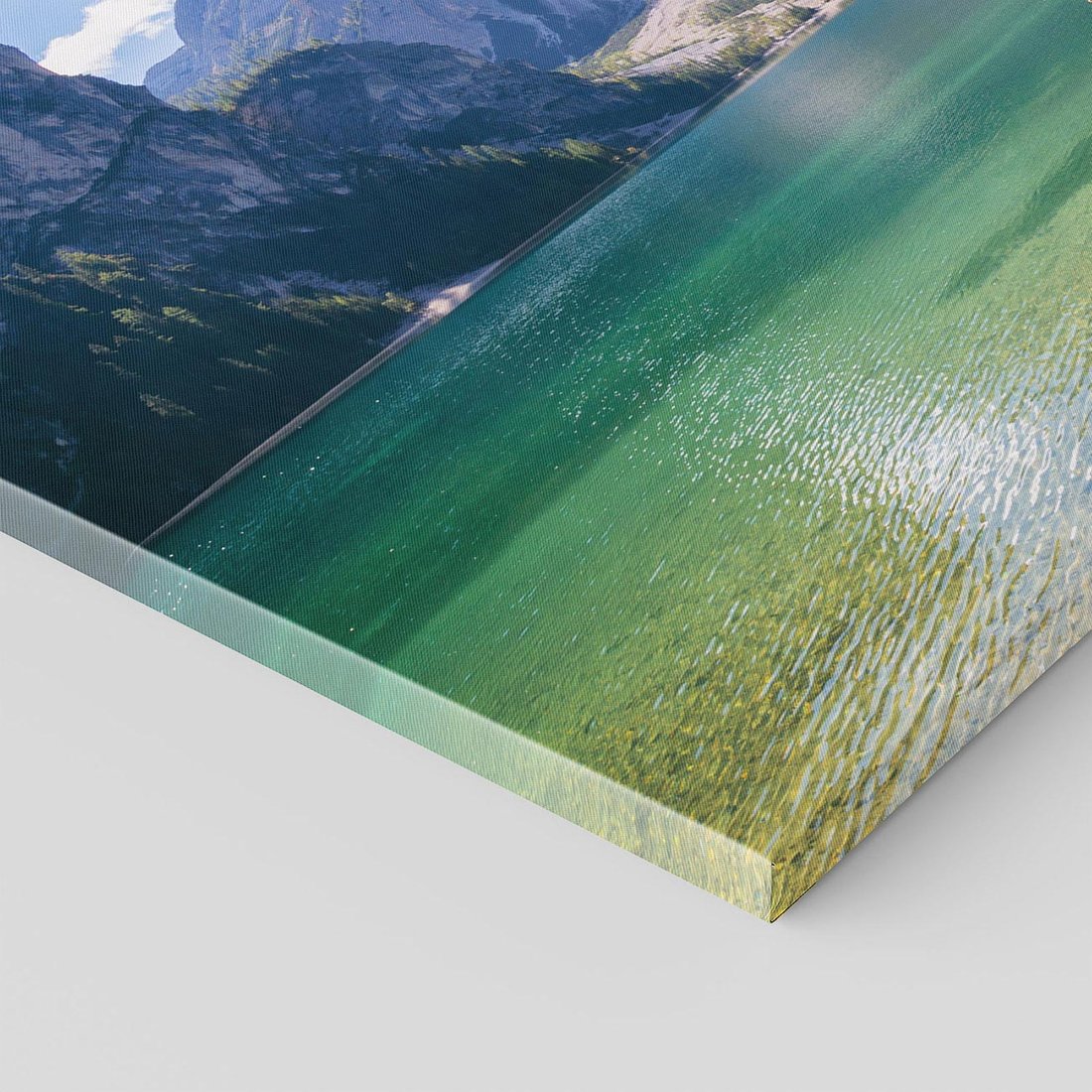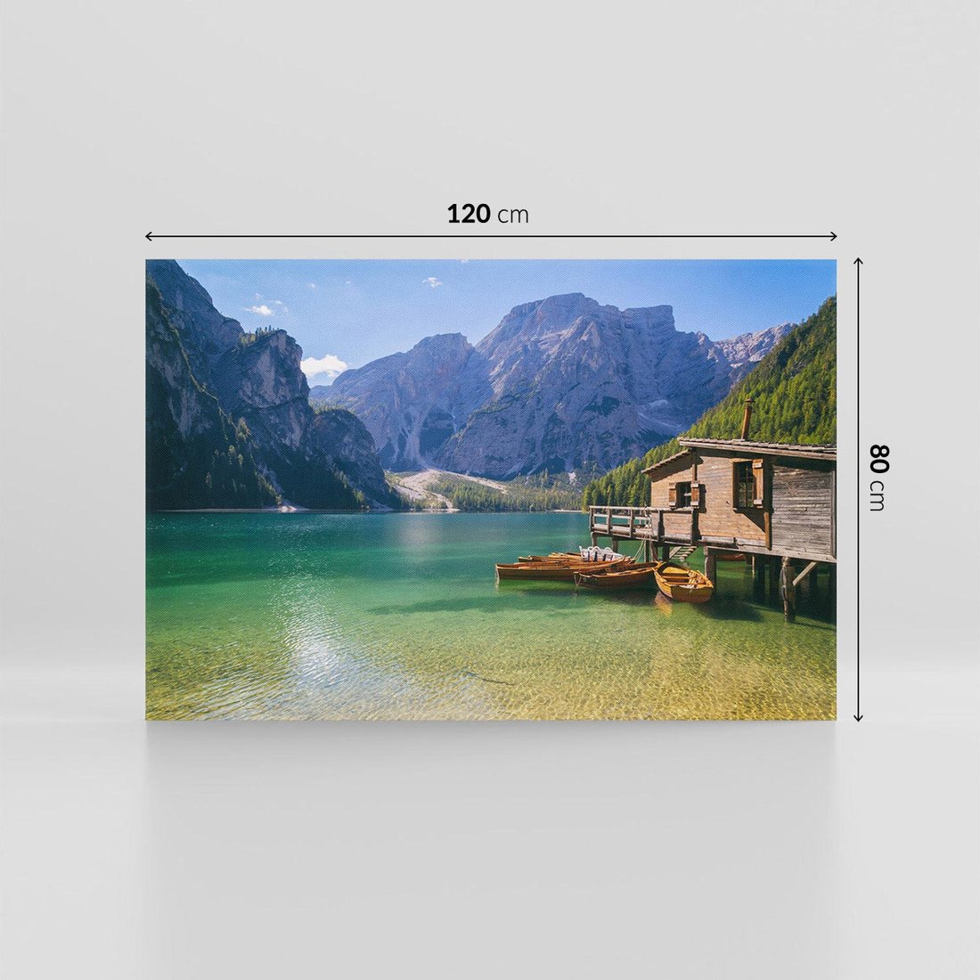 Odkryj spokój górskiej przyrody dzięki temu uroczemu obrazowi przedstawiającemu góry i jezioro. Zielone wzgórza, lśniąca tafla wody i czyste powietrze tworzą malowniczy widok. Ta kompozycja dodaje spokoju i naturalnego piękna, idealna dla miłośników górskich krajobrazów i wyciszenia w naturze.
